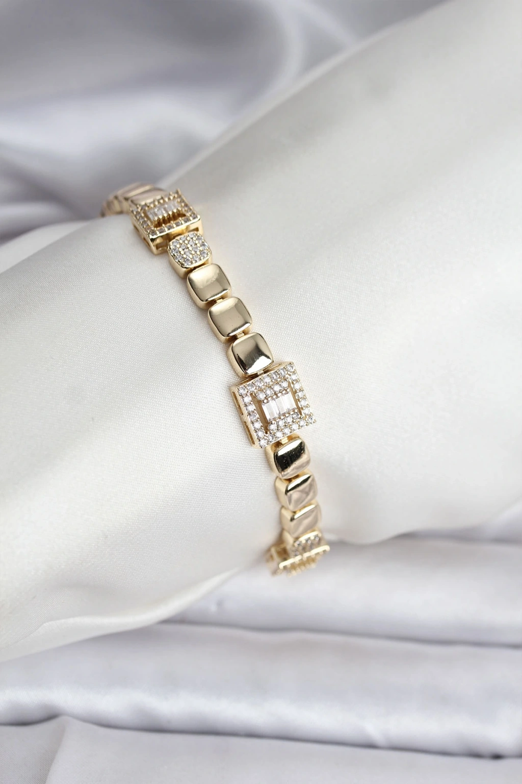 14K Gold Renk Kaplama Zirkon Taşlı CM Kadın Bileklik