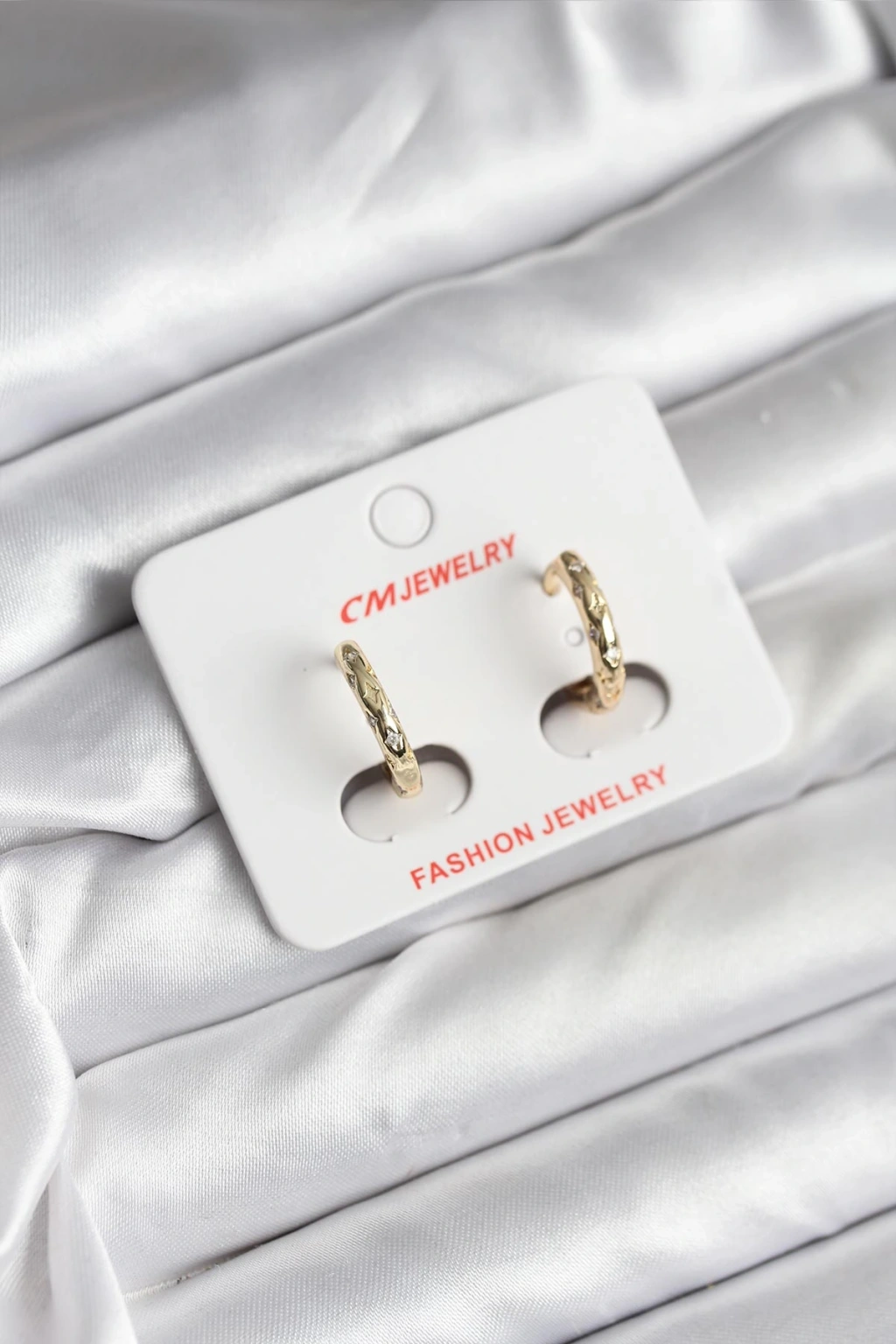 14K Gold Renk Kaplama Zirkon Taşlı Halka Model CM Kadın Küpe