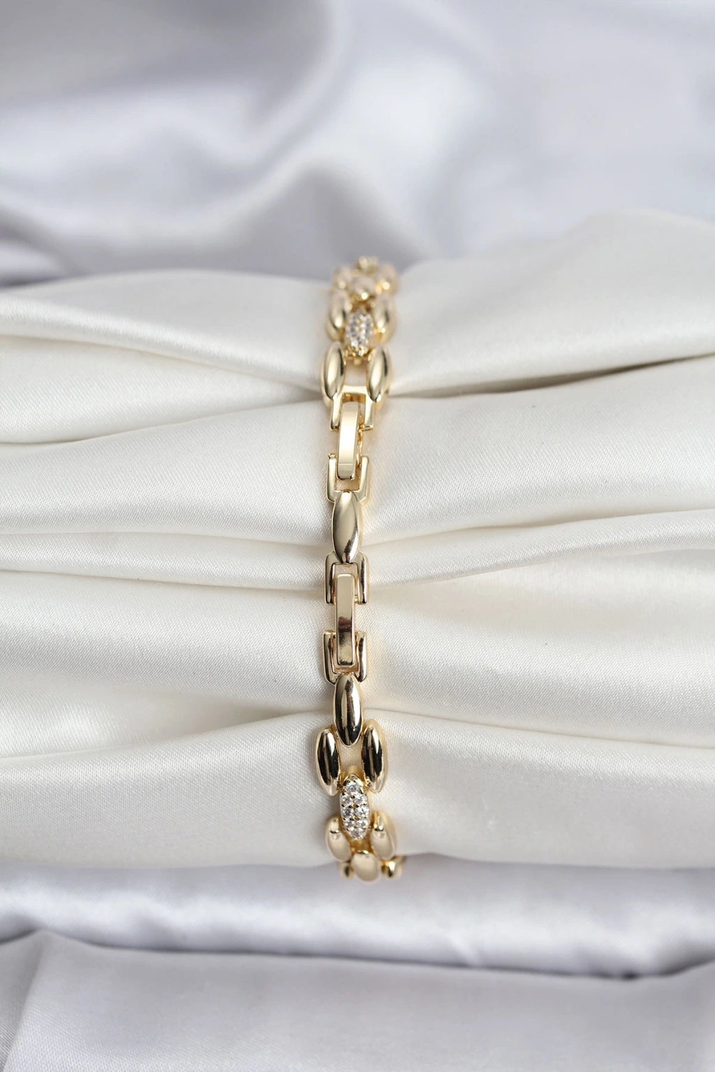 14K Gold Renk Kaplama Zirkon Taşlı Model CM Kadın Bileklik