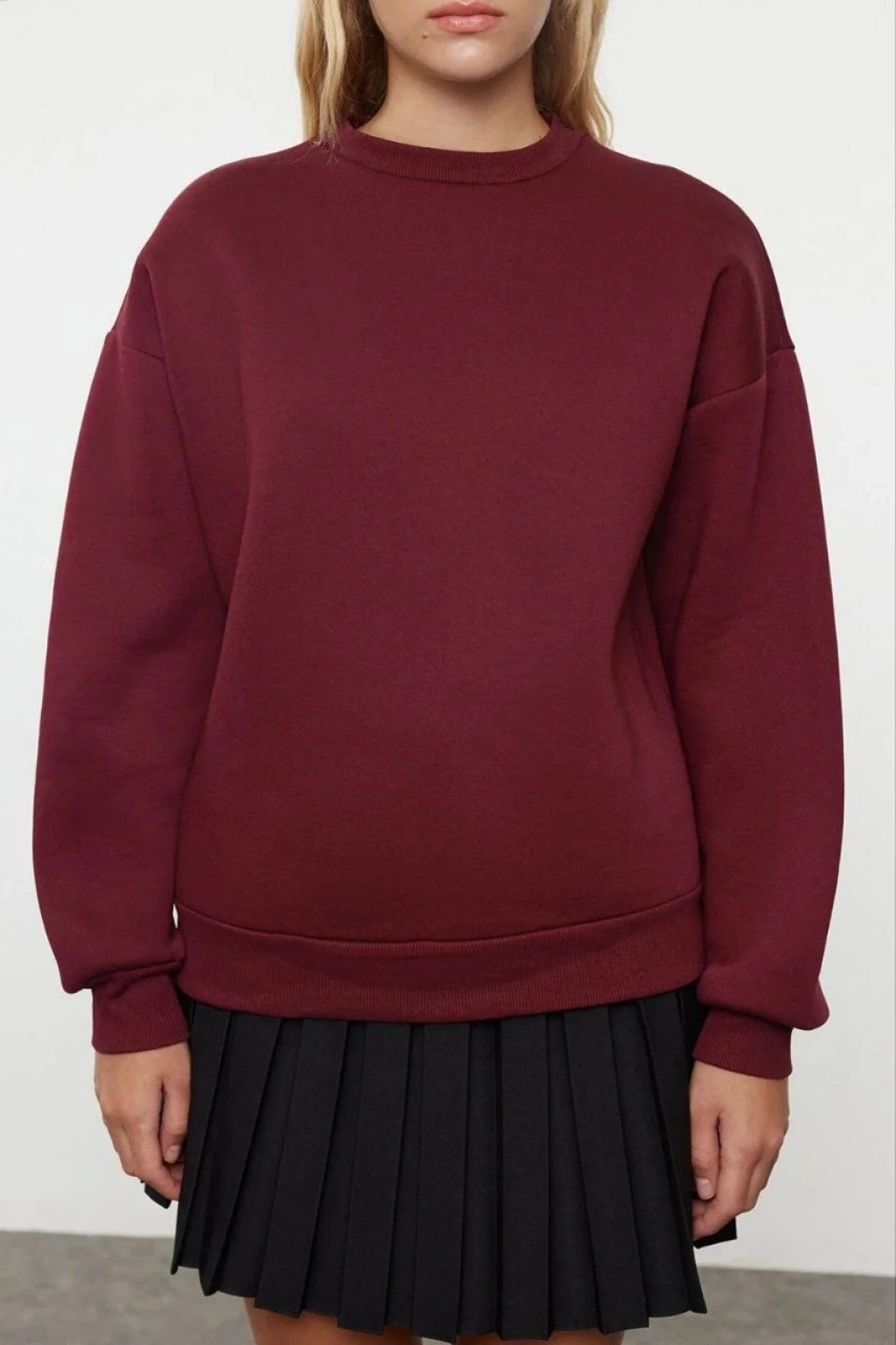3 iplik şardonlu bisiklet yaka sweatshirt bordo