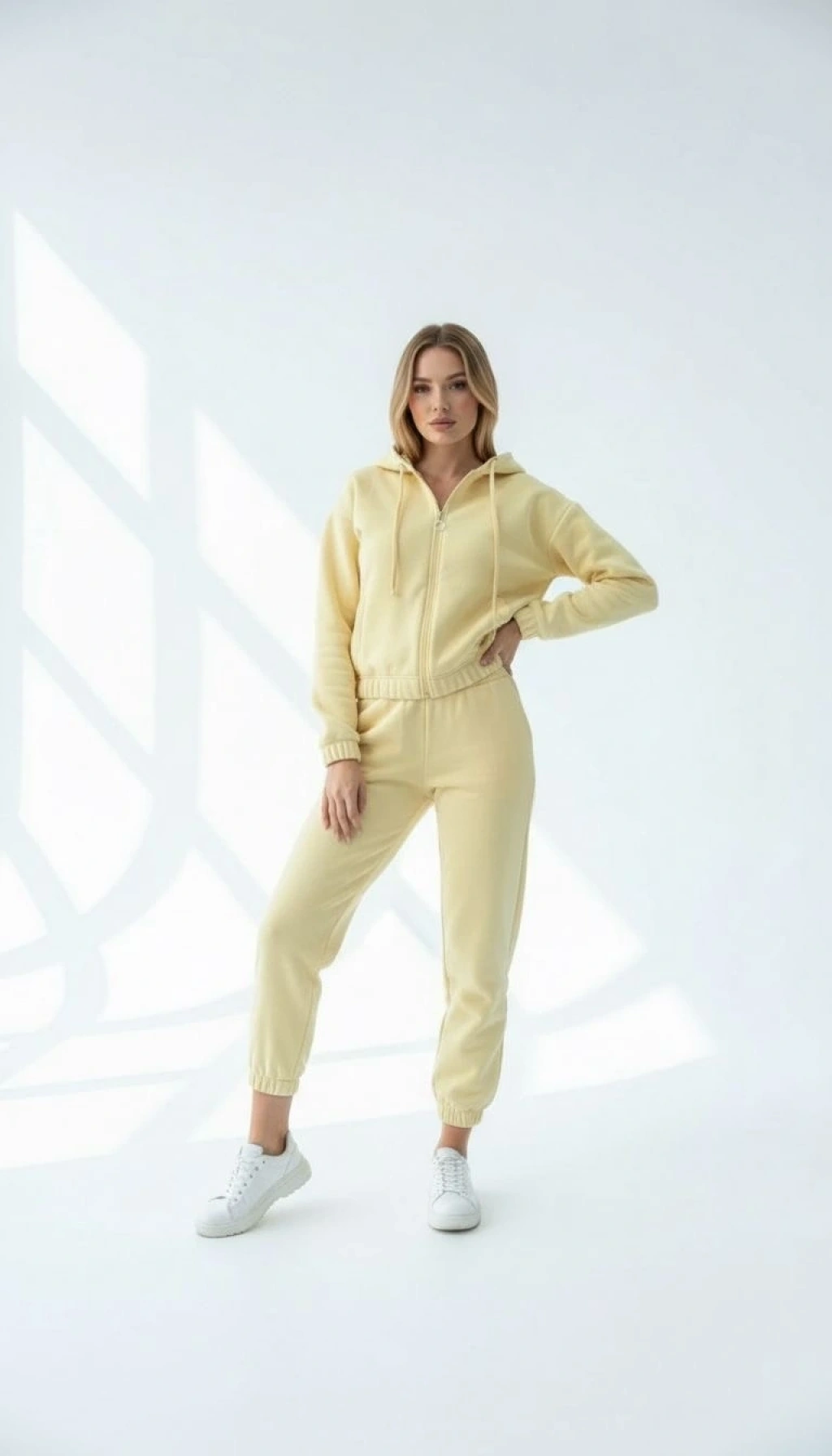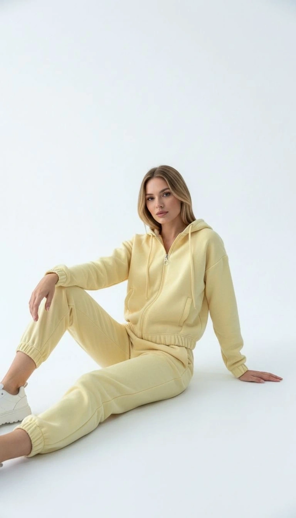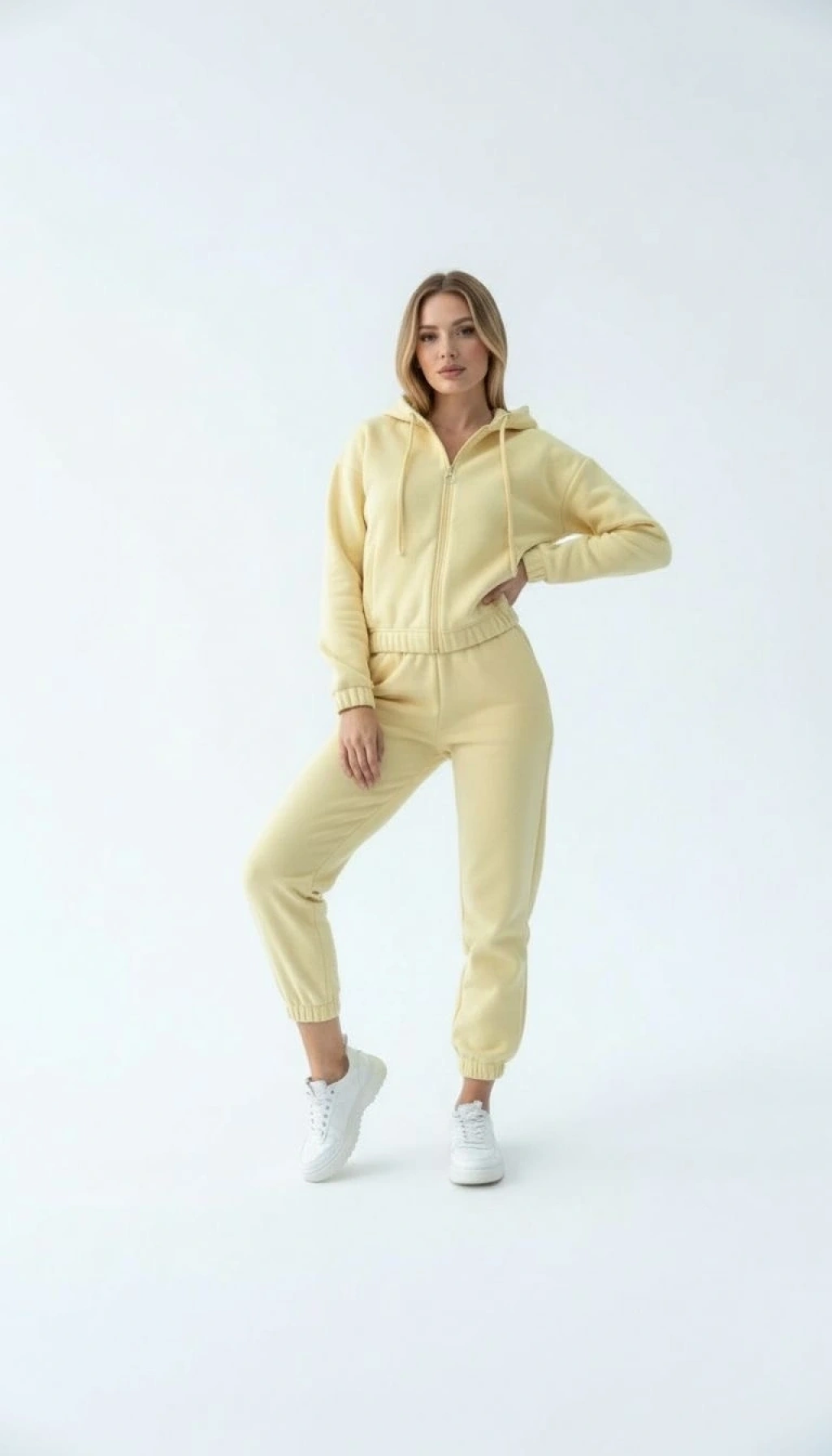 3 iplik şardonlu Kapşonlu fermuarlı kısa üst sarı pat8590