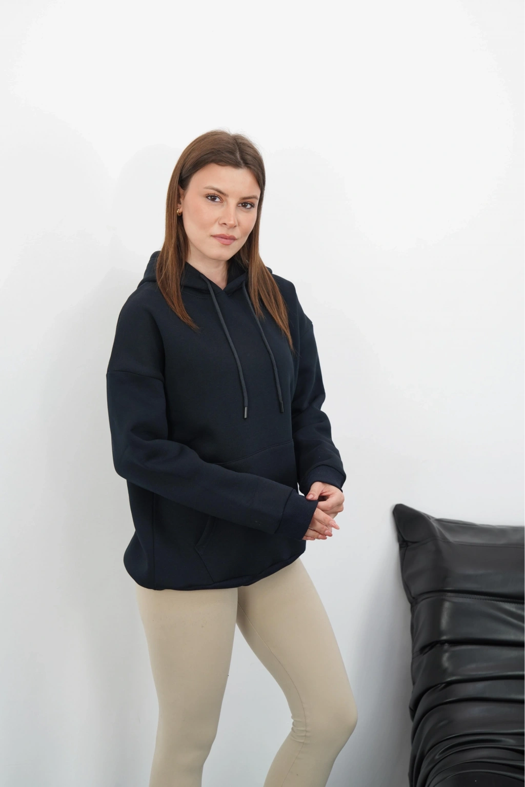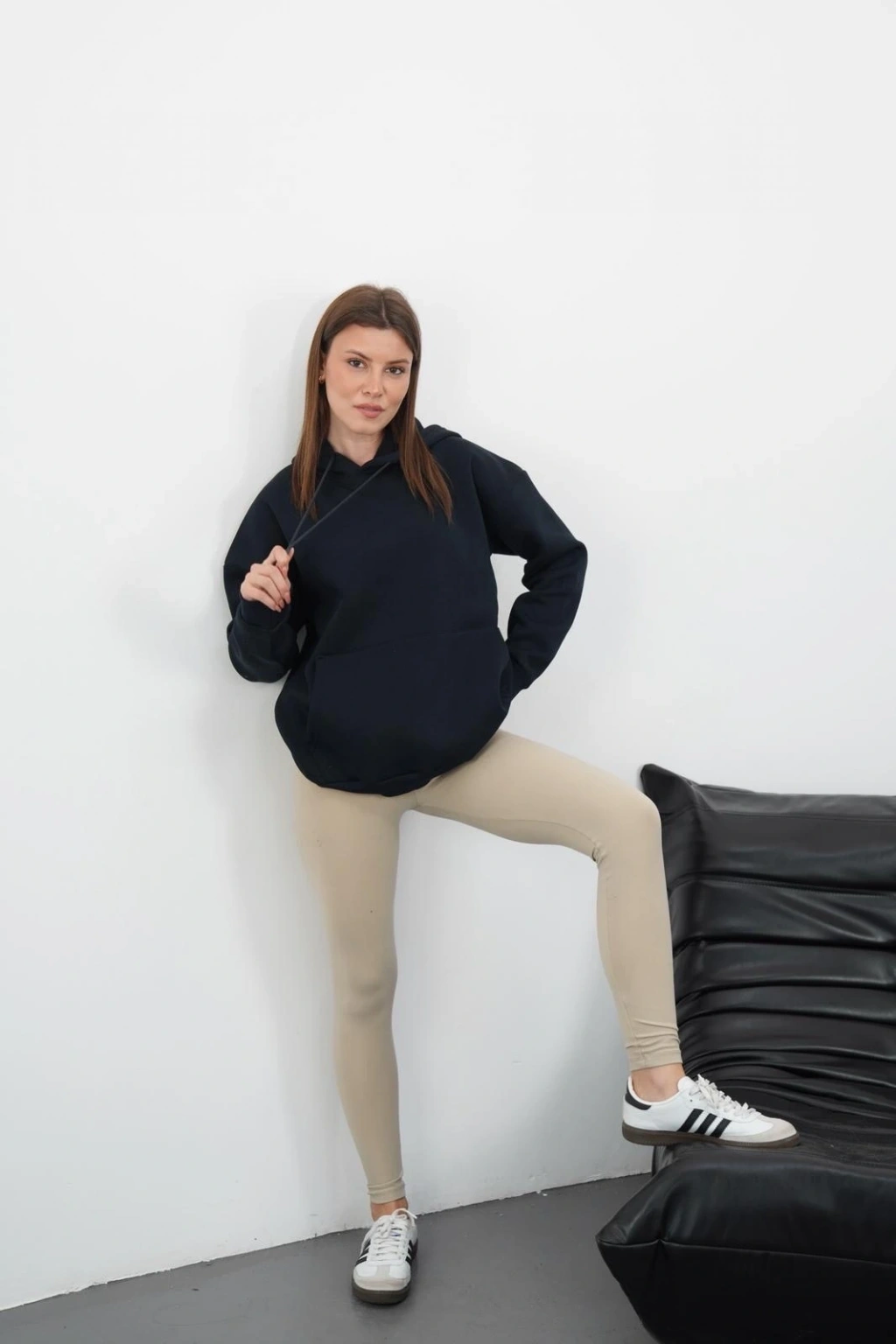 3 iplik şardonlu kapşonlu swetshirt lacivert md63