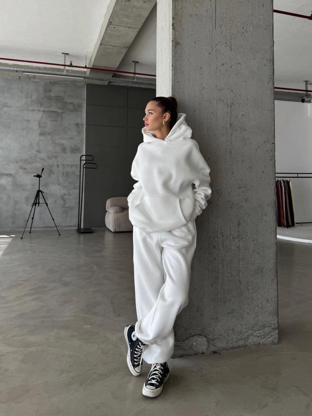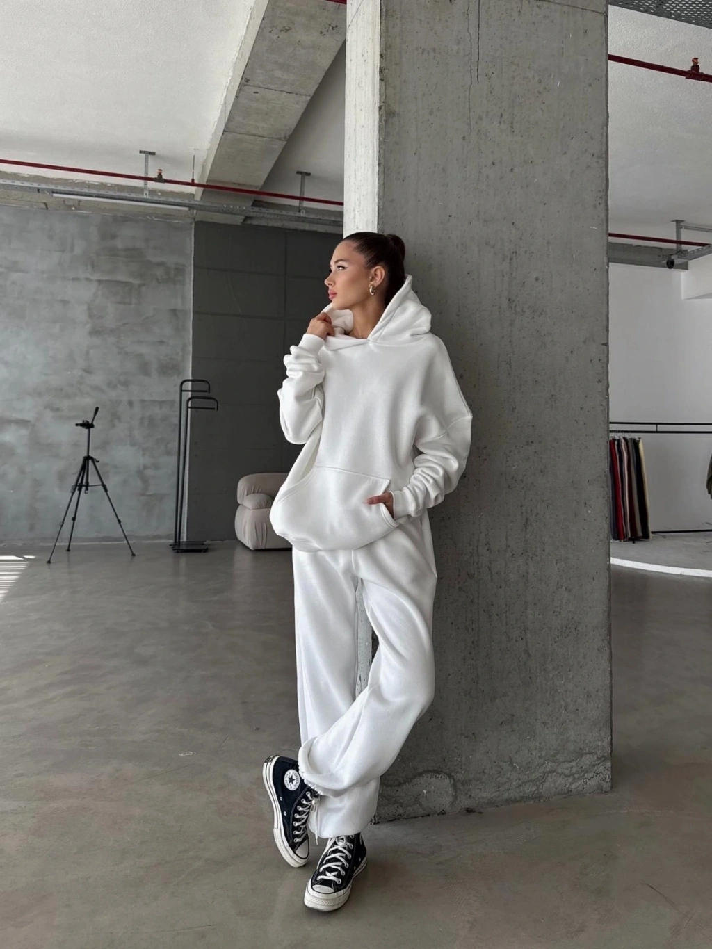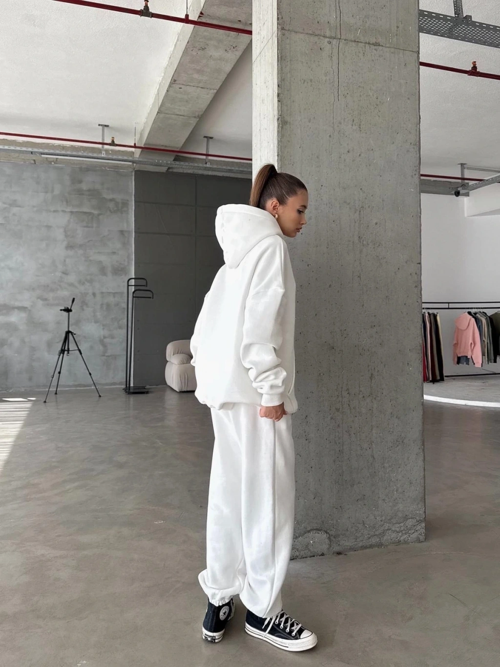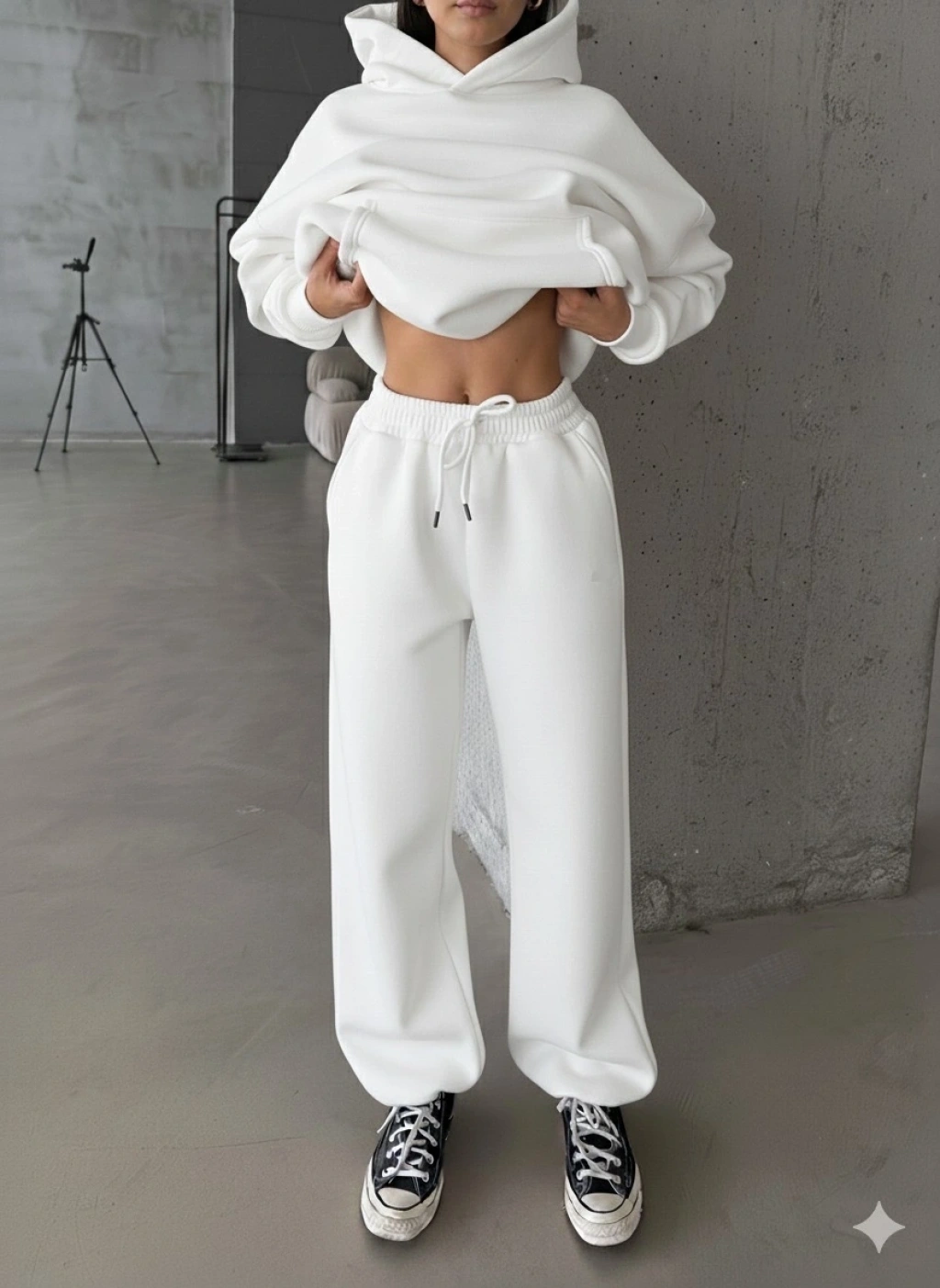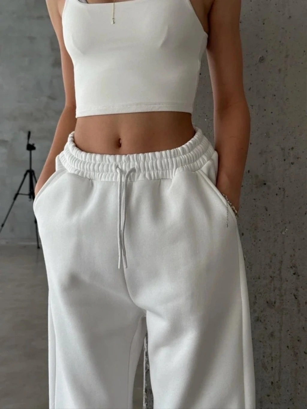 3 iplik şardonlu paça lastikli eşofman beyaz is001