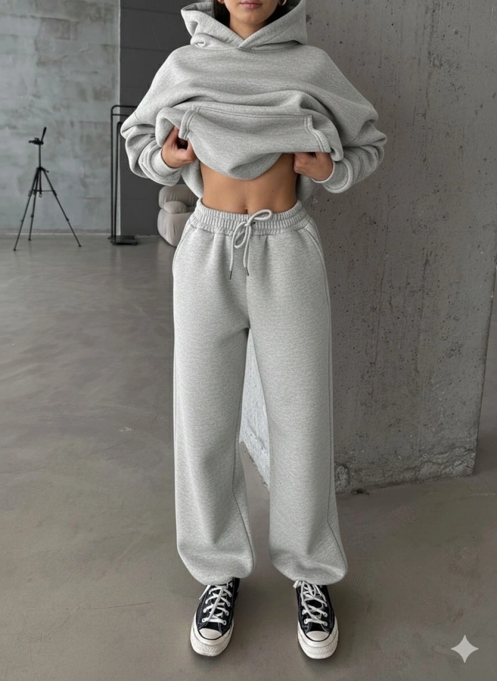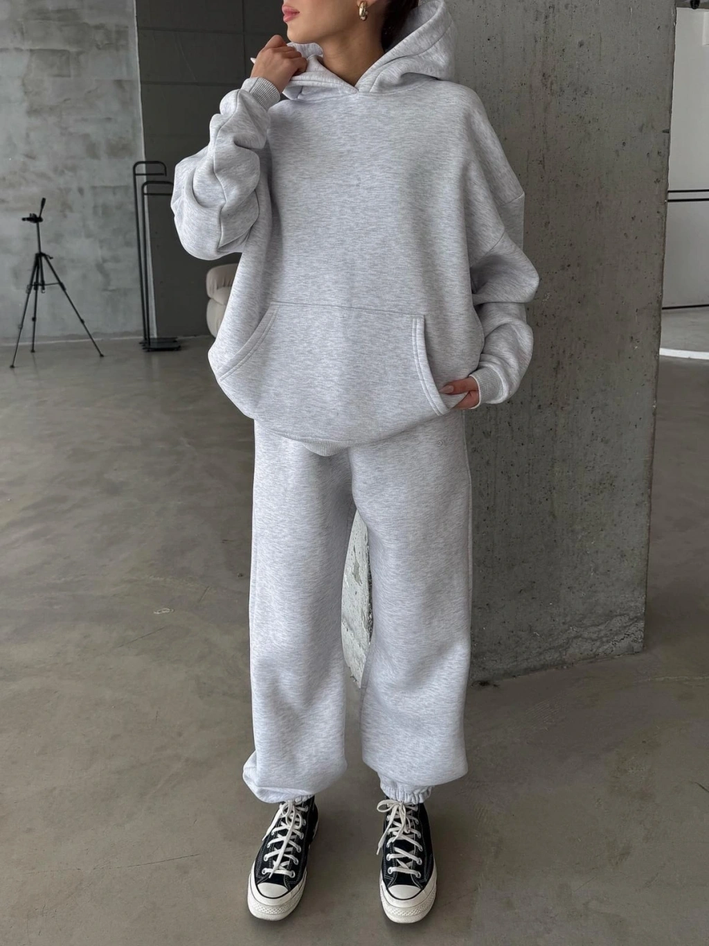 3 iplik şardonlu oversize eşofman gri