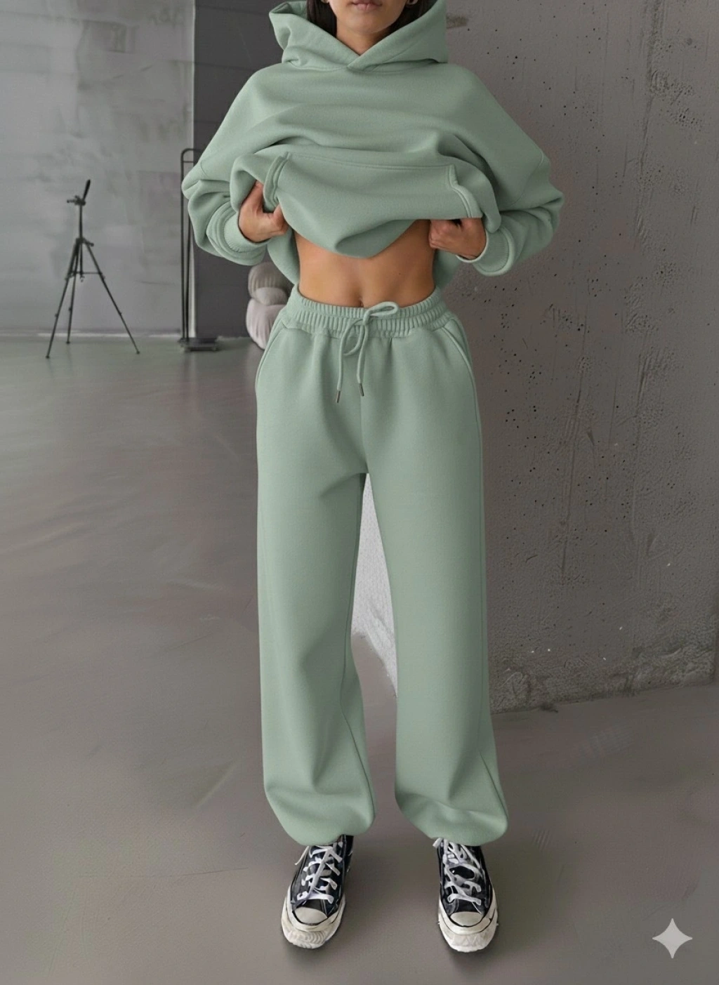 3 iplik şardonlu Lastik paça eşofman mint p510439