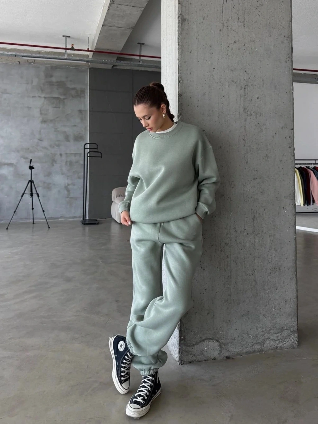 3 iplik şardonlu paça lastikli eşofman yeşil is001
