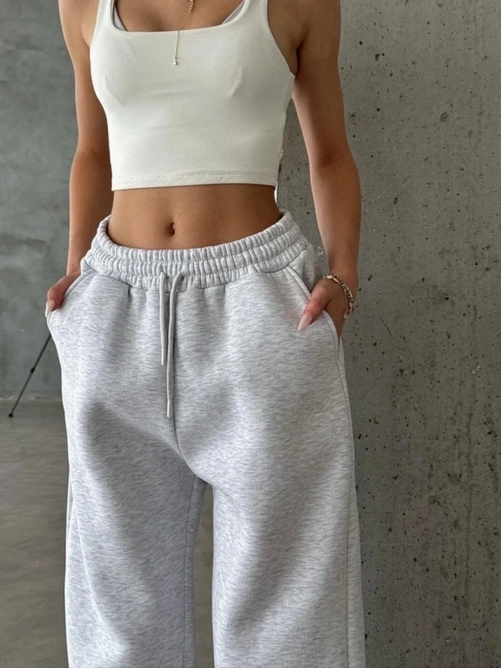 3 iplik şardonlu Lastik paça eşofman gri p510439