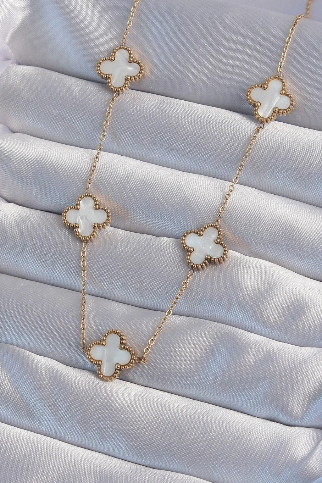 316L Çelik Gold Renk Beyaz Sedefli Yonca Kolye