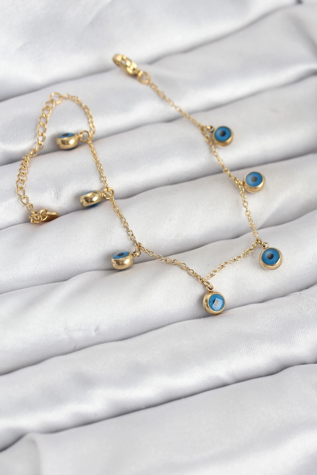 316L Çelik Gold Renk Minimal Nazar Model Kadın Bileklik