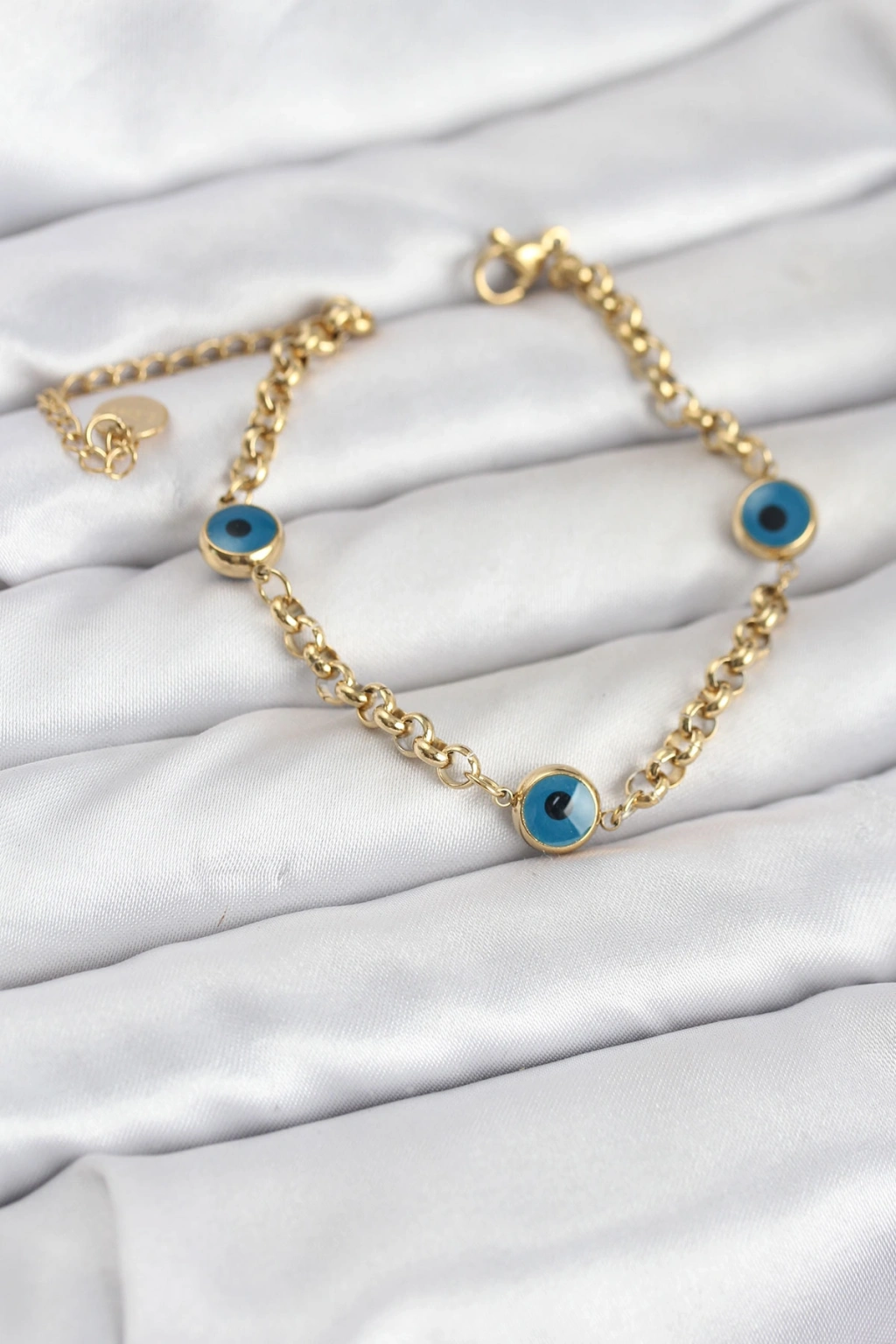 316L Çelik Nazar Model Gold Renk Kadın Bileklik