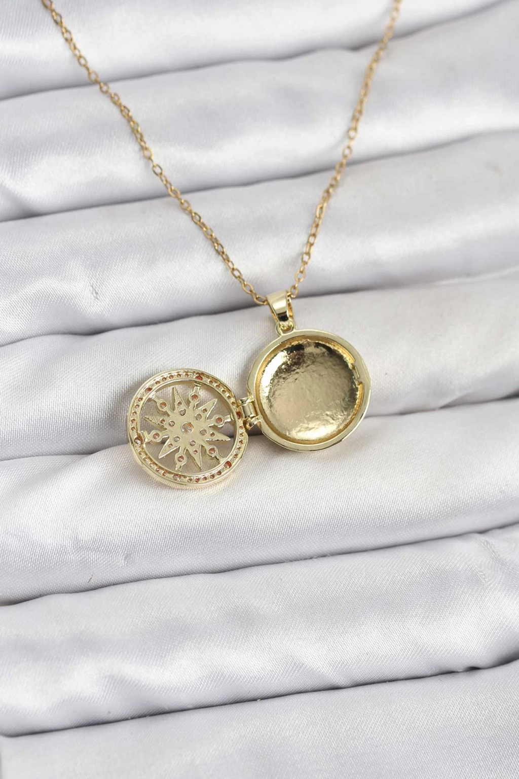 316L Çelik Zincir Gold Renk Kutup Yıldızı Kapaklı Model Kadın Kolye
