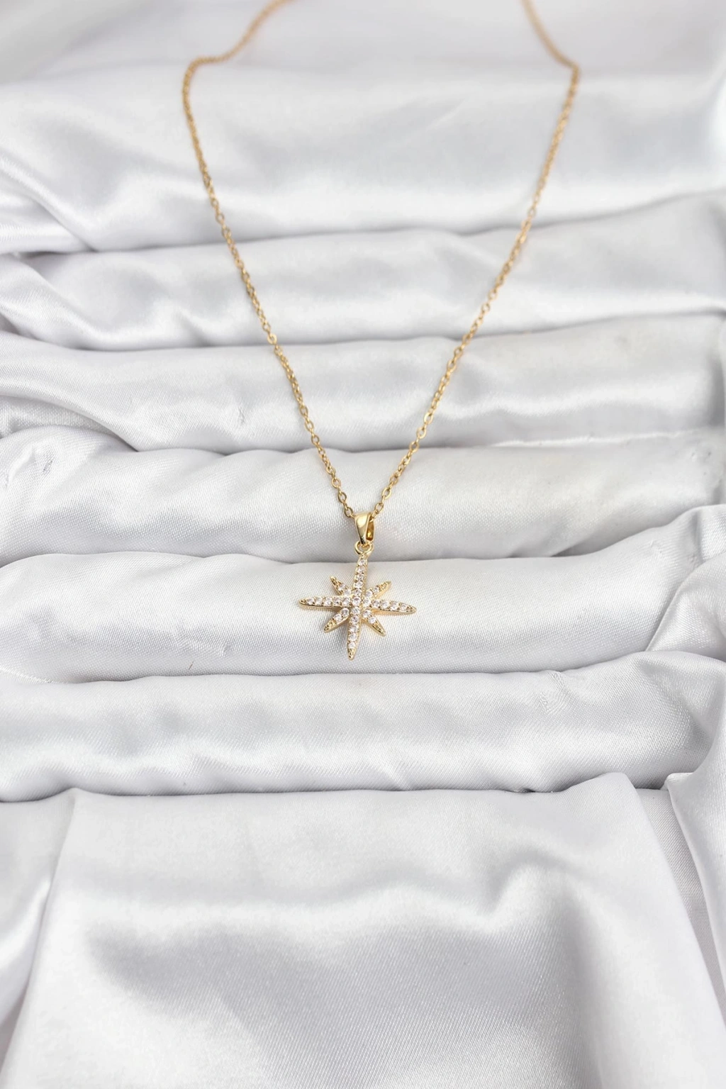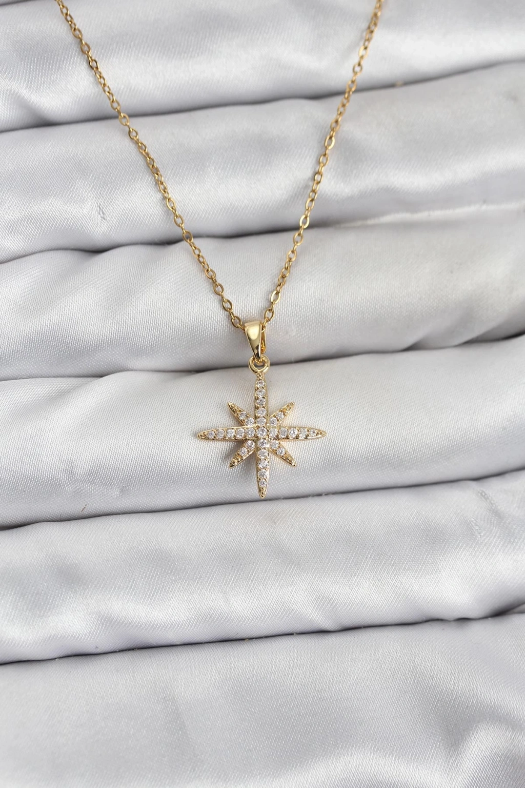 316L Çelik Zincir Gold Renk Kutup Yıldızı Model Zirkon Taşlı Kadın Kolye