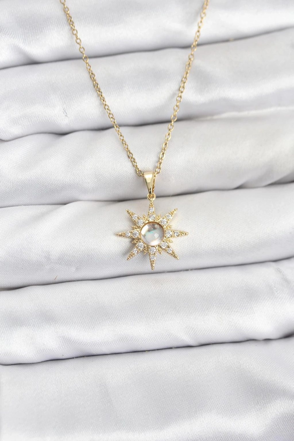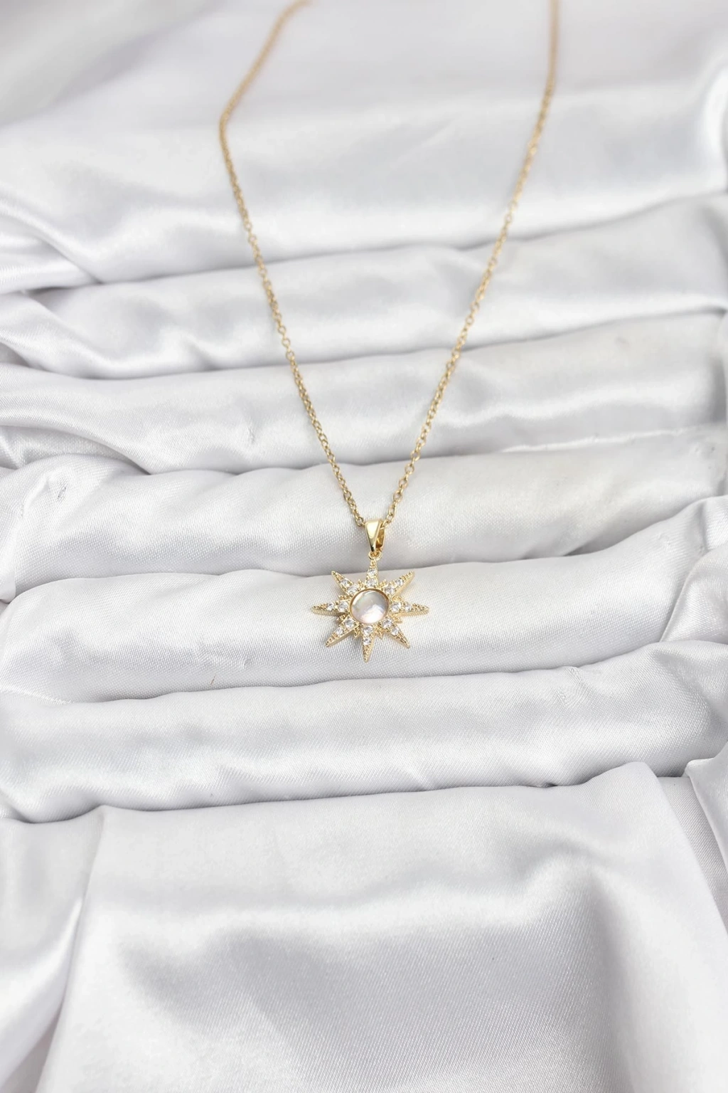 316L Çelik Zincir Gold Renk Kutup Yıldızı Model Zirkon Taşlı Kadın Kolye