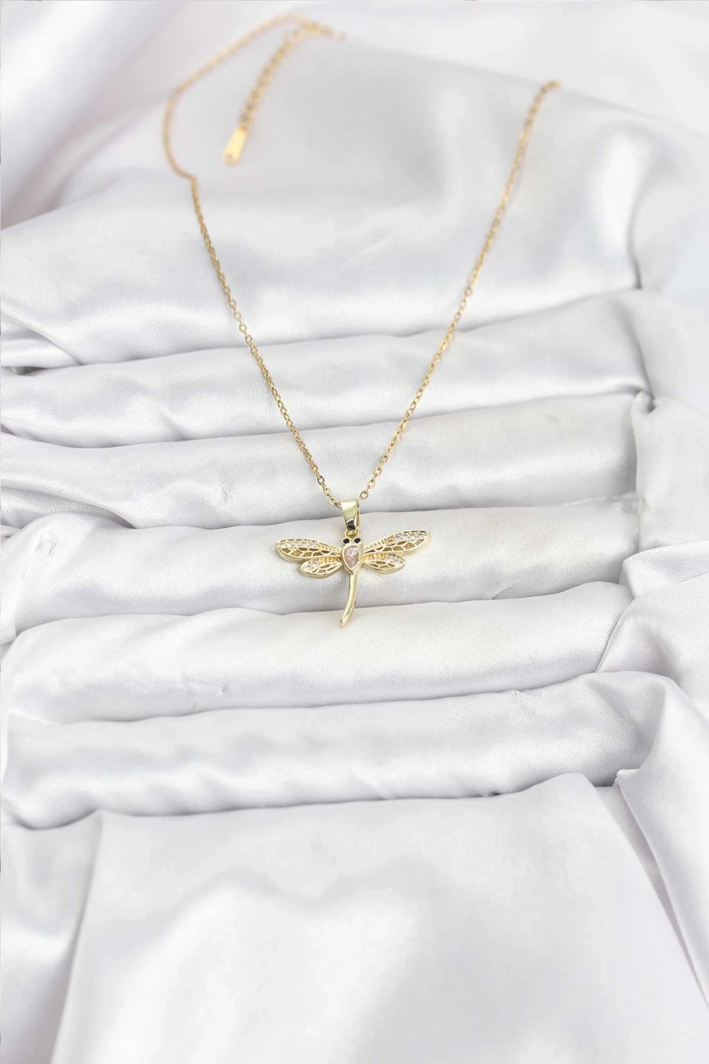 316L Çelik Zincir Gold Renk Yusufçuk Model Kadın Kolye