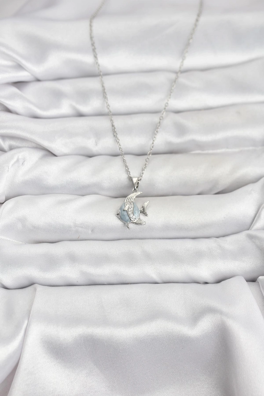 316L Çelik Zincir Gümüş Renk Balık Model Zirkon Taşlı Kadın Kolye