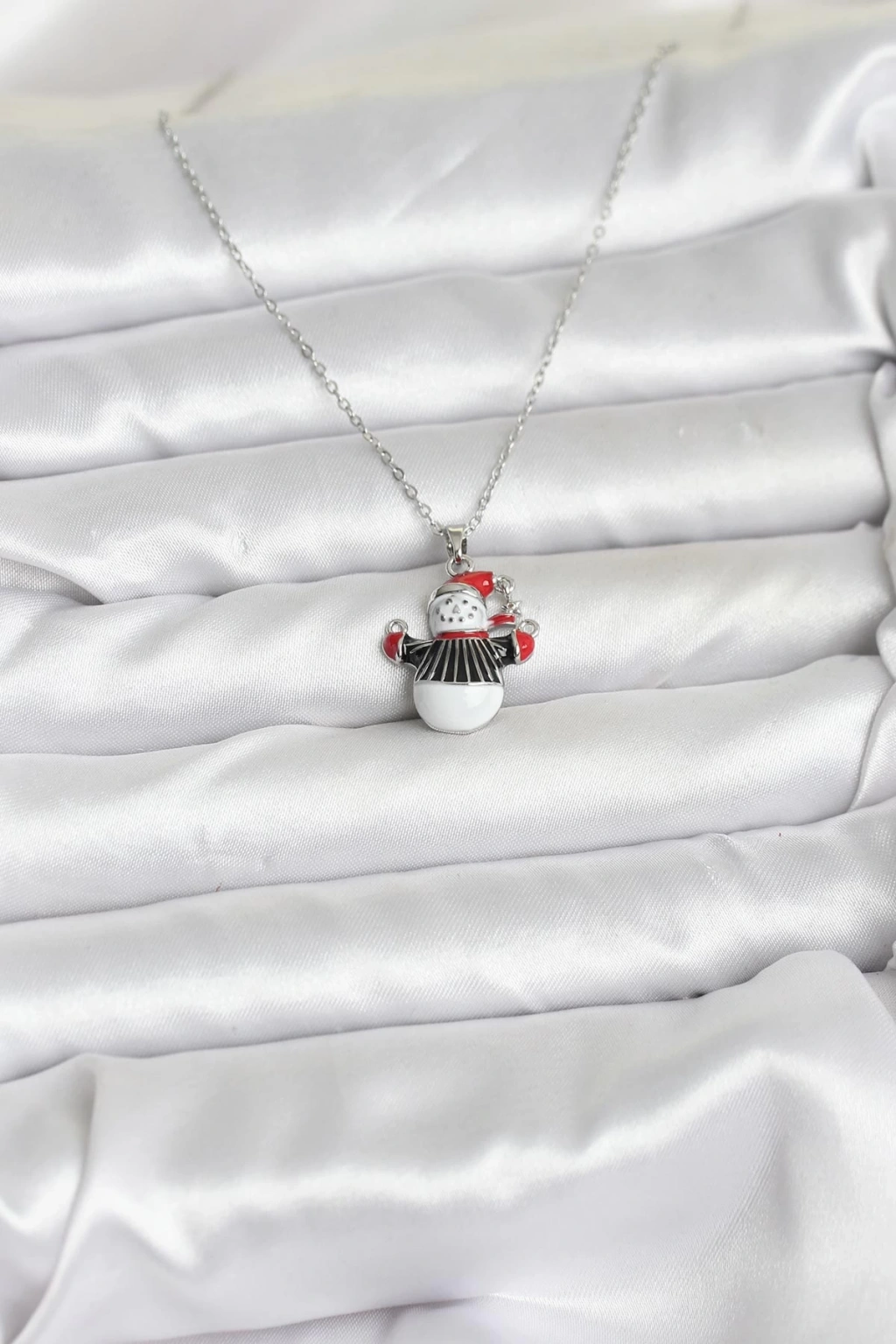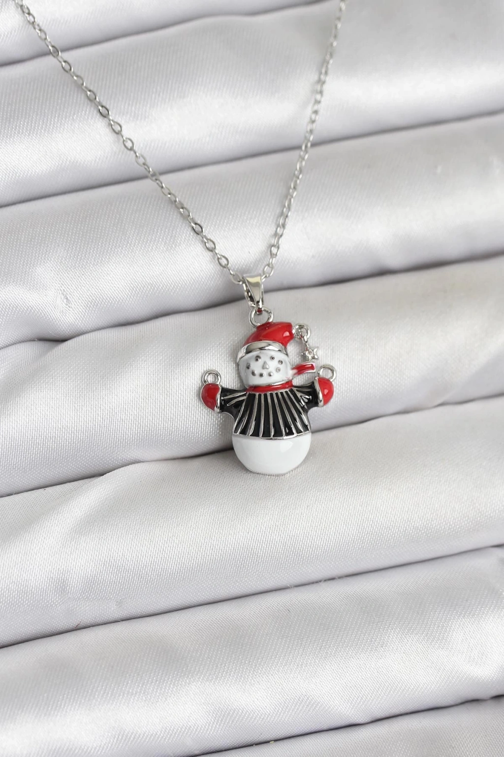 316L Çelik Zincir Gümüş Renk Kardan Adam Figürlü Yılbaşı Temalı Kadın Kolye