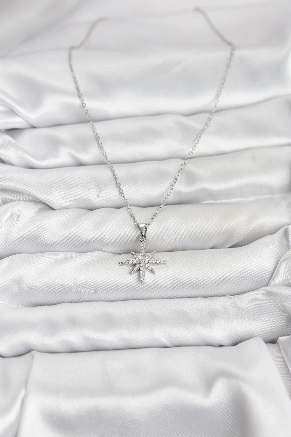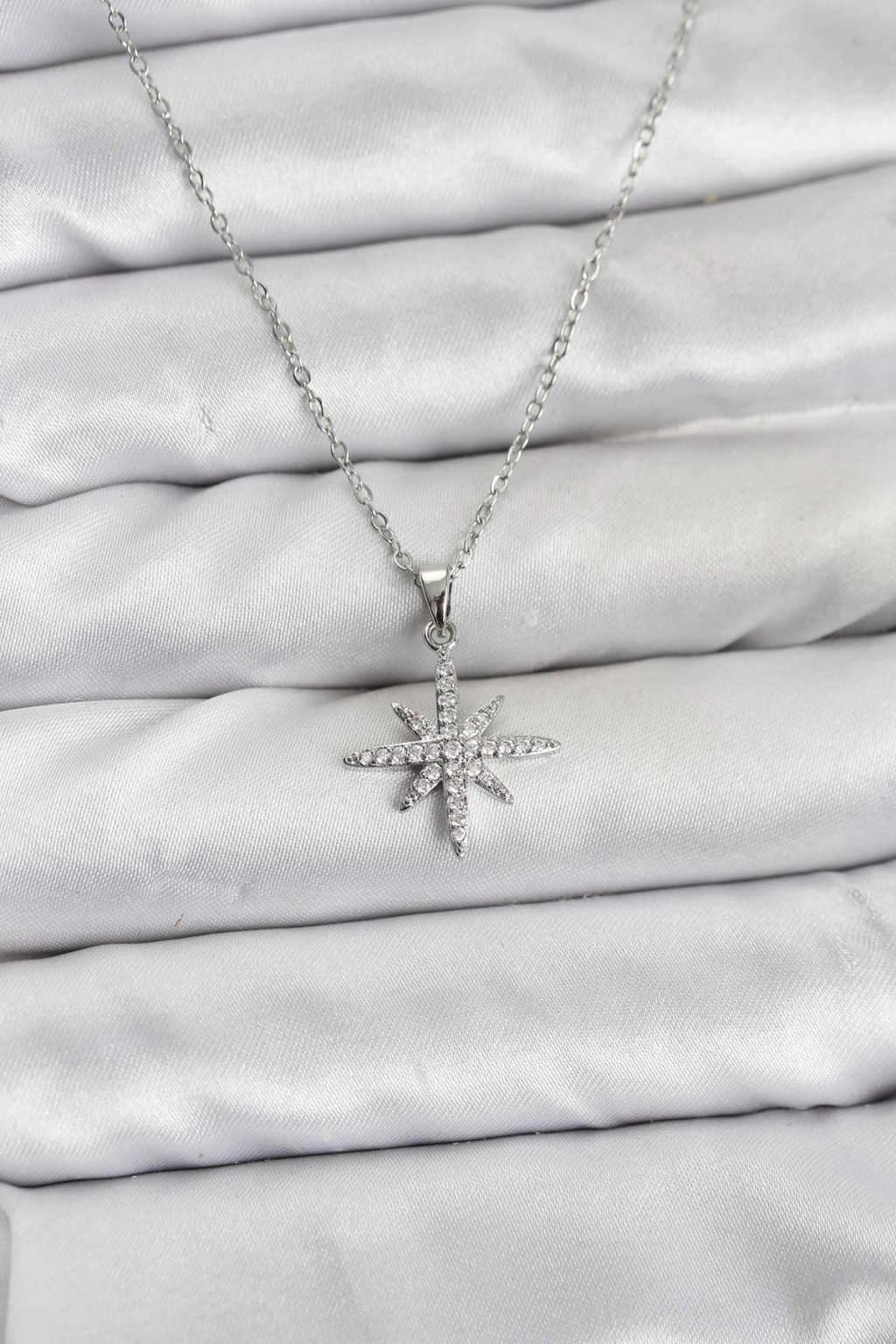316L Çelik Zincir Gümüş Renk Kutup Yıldızı Model Zirkon Taşlı Kadın Kolye