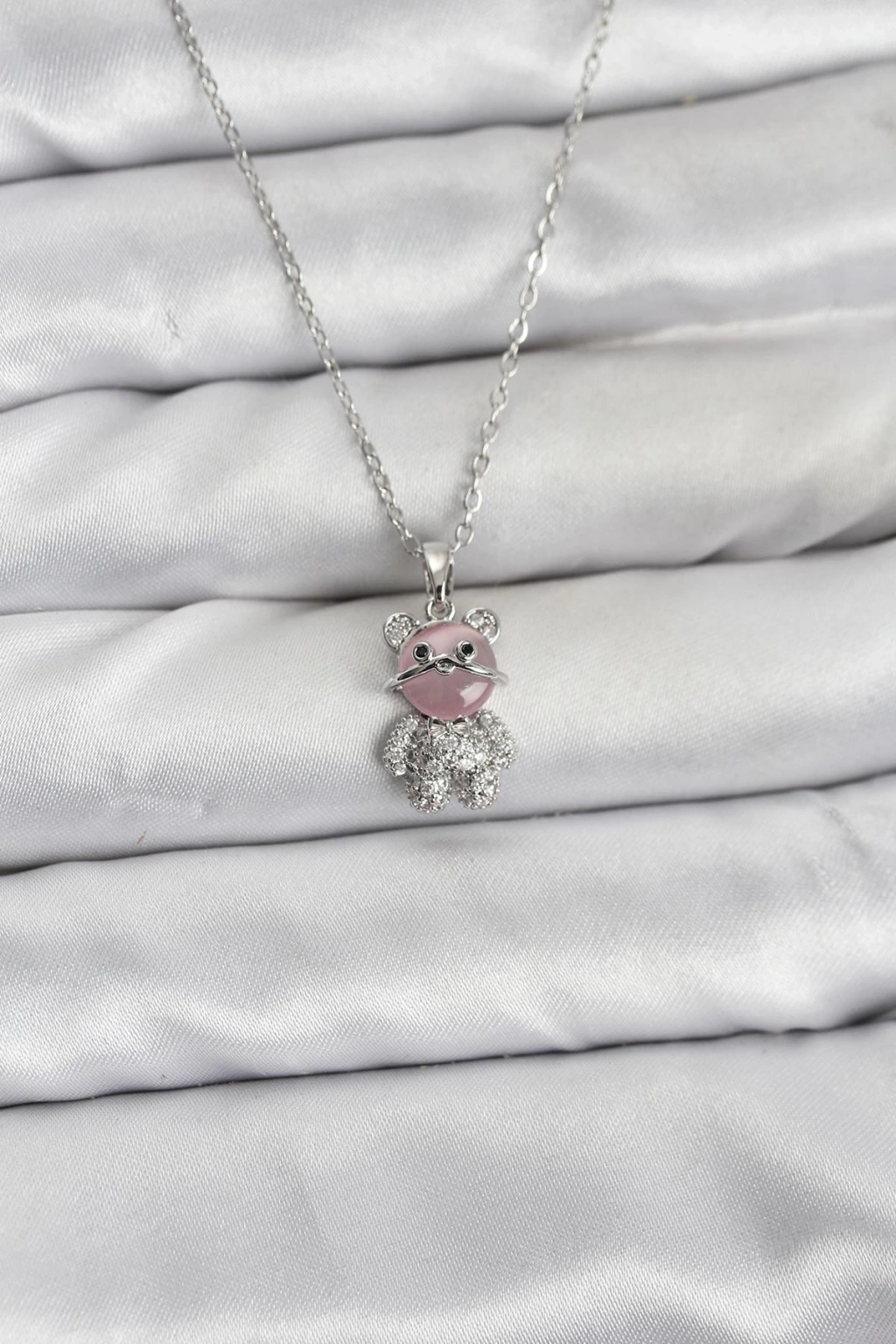 316L Çelik Zincir Gümüş Renk Teddy Bear Model Zirkon Taşlı Kadın Kolye