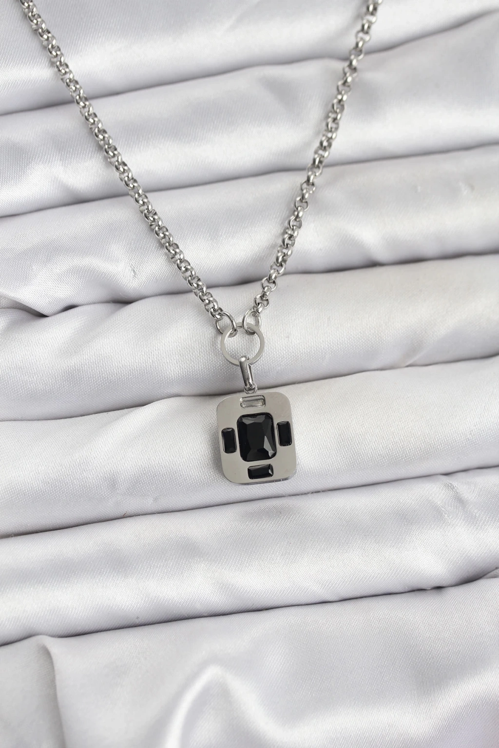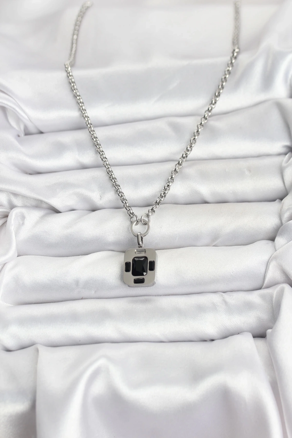 Pirinç Gümüş Renk Minimal Charmlı Kadın Kolye