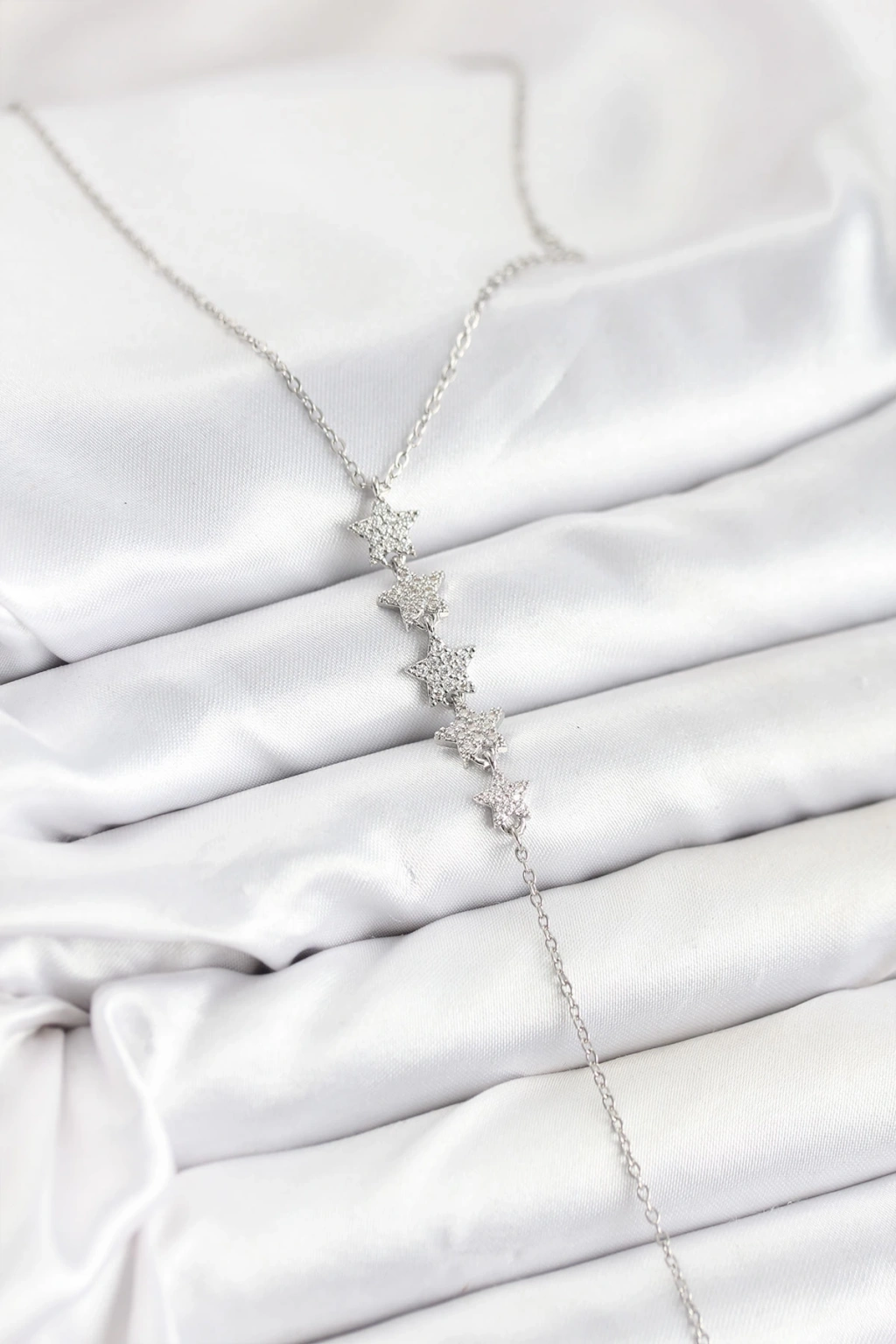 316L Çelik Zincir Gümüş Renk Yıldız Model Y Kolye