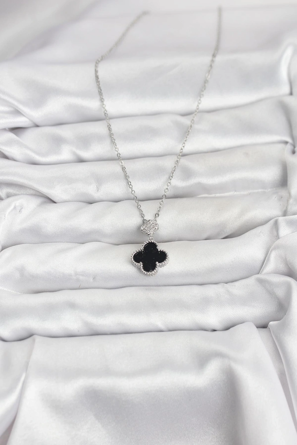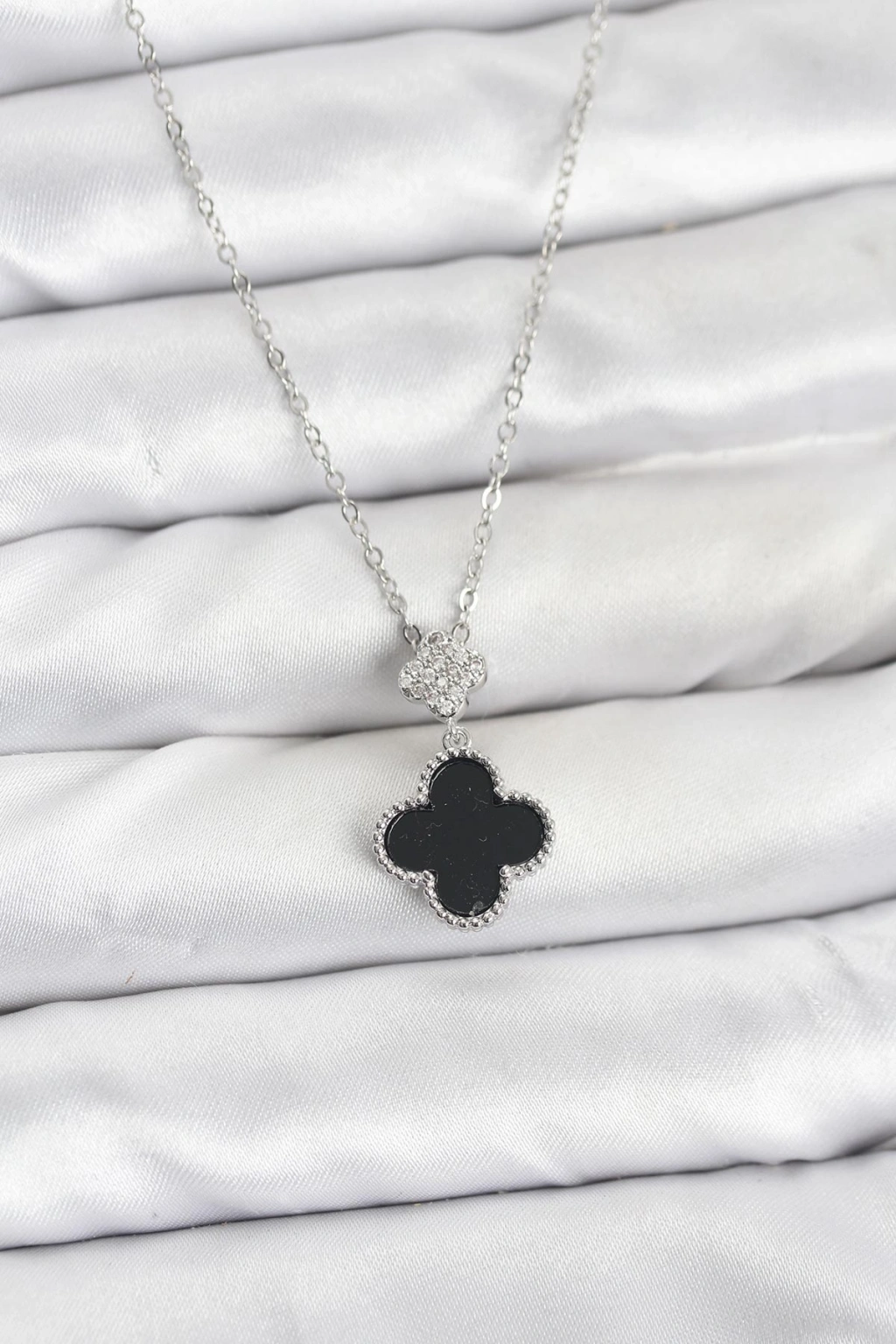 316L Çelik Zincir Gümüş Renk Yonca Model Zirkon Taşlı Kadın Kolye