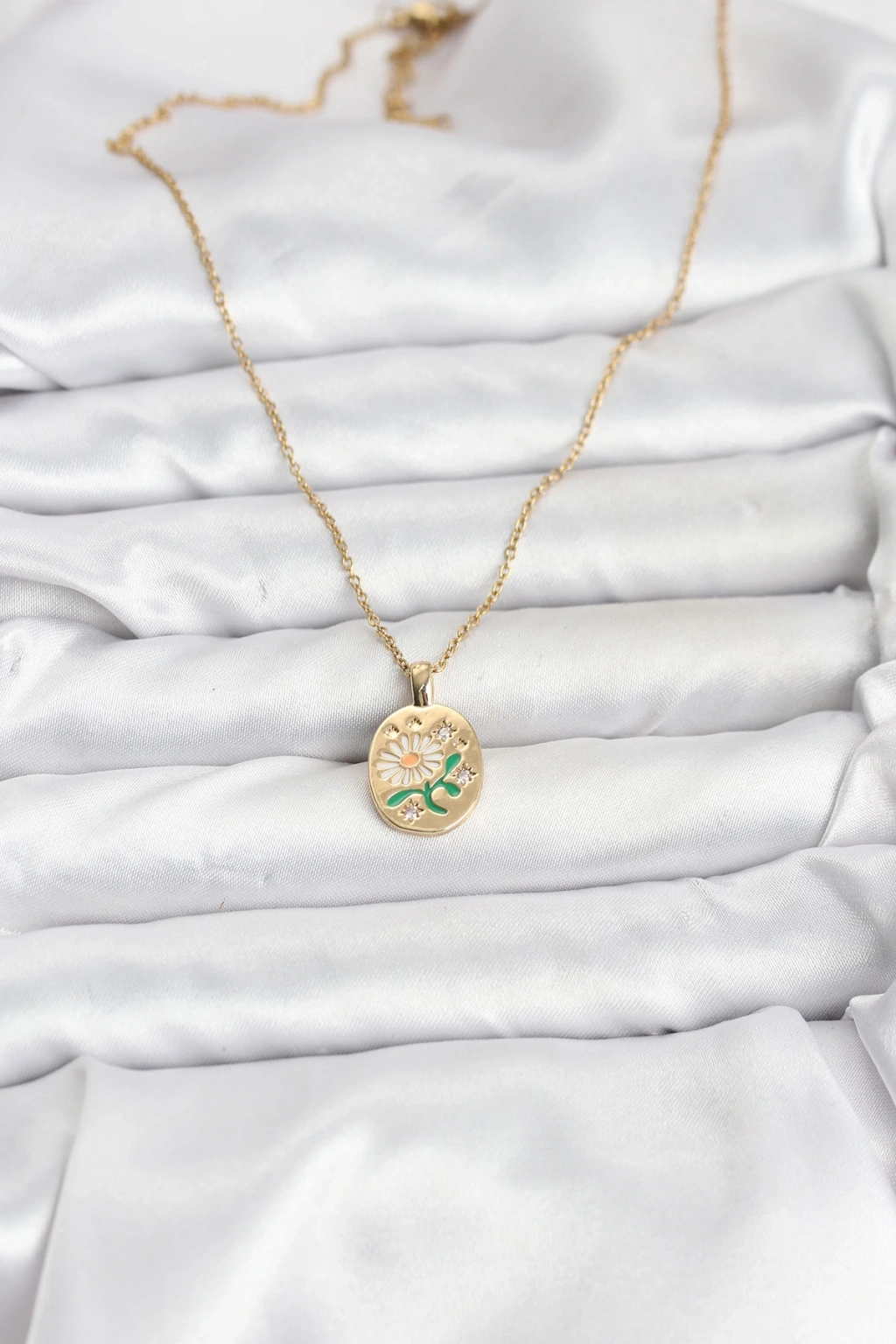 316L Çelik Zincir Papatya Figürlü Kadın Kolye