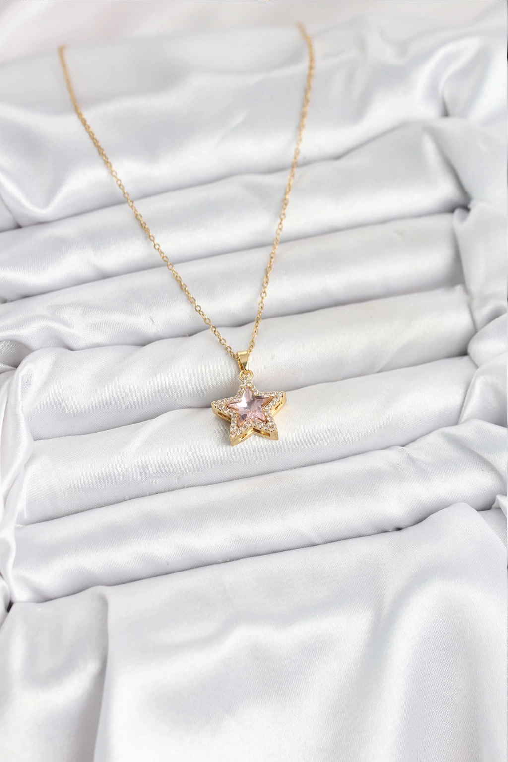 316L Çelik Zincir Pembe Taşlı Yıldız Model Kadın Kolye