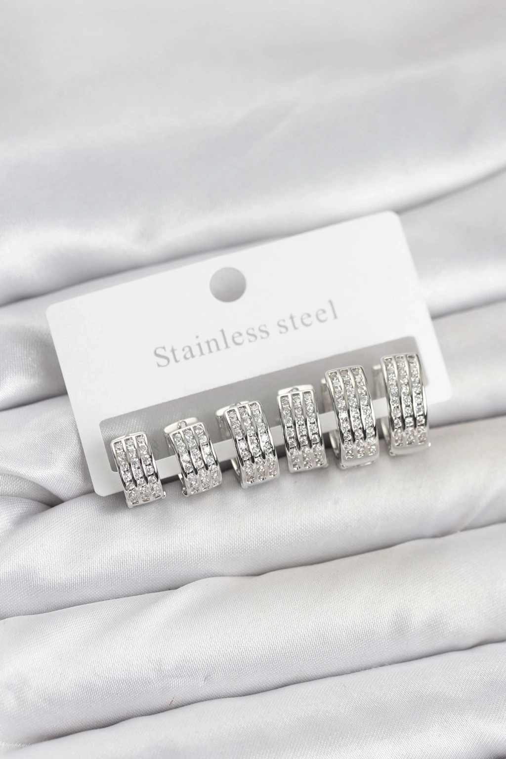 316L Çelik Zirkon Taşlı Gümüş Renk Halka Küpe Seti