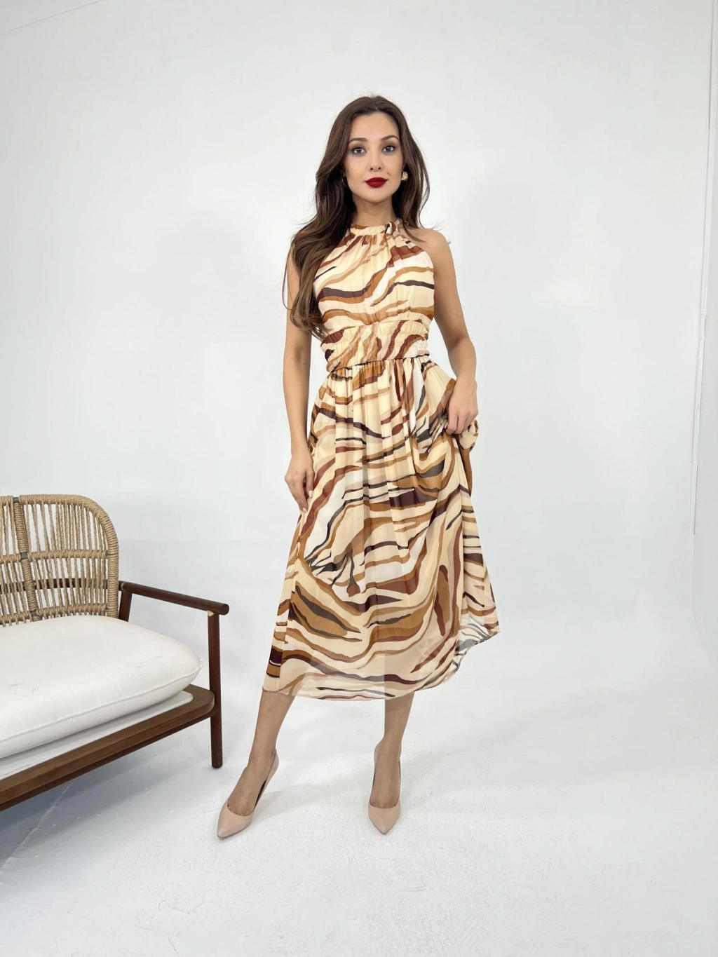 Modelin Ölçüleri: Boy:165, Kg:55, Göğüs:90, Bel:72, Kalça: 100