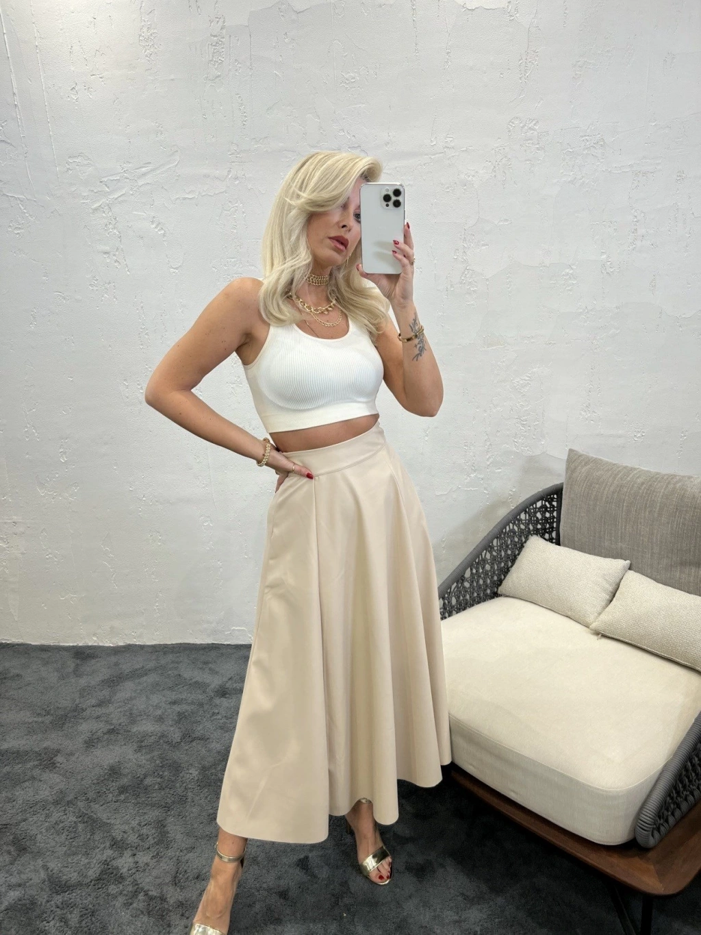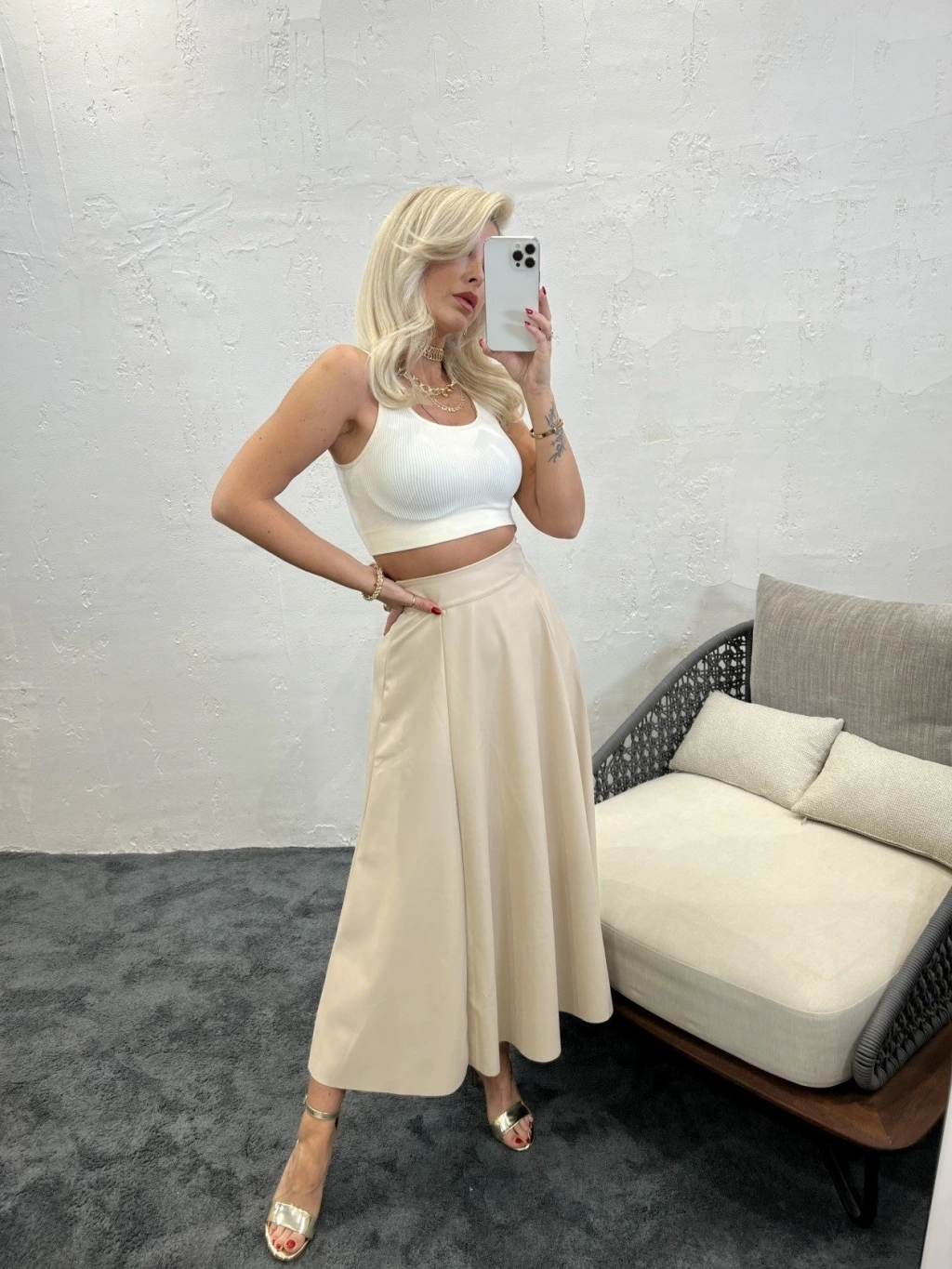 Modelin Ölçüleri: Boy:165, Kg:55, Göğüs:90, Bel:72, Kalça: 100