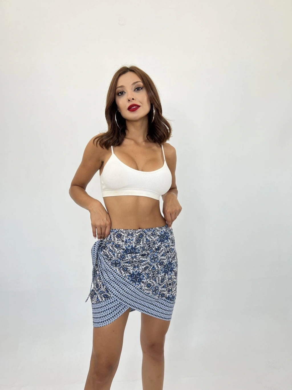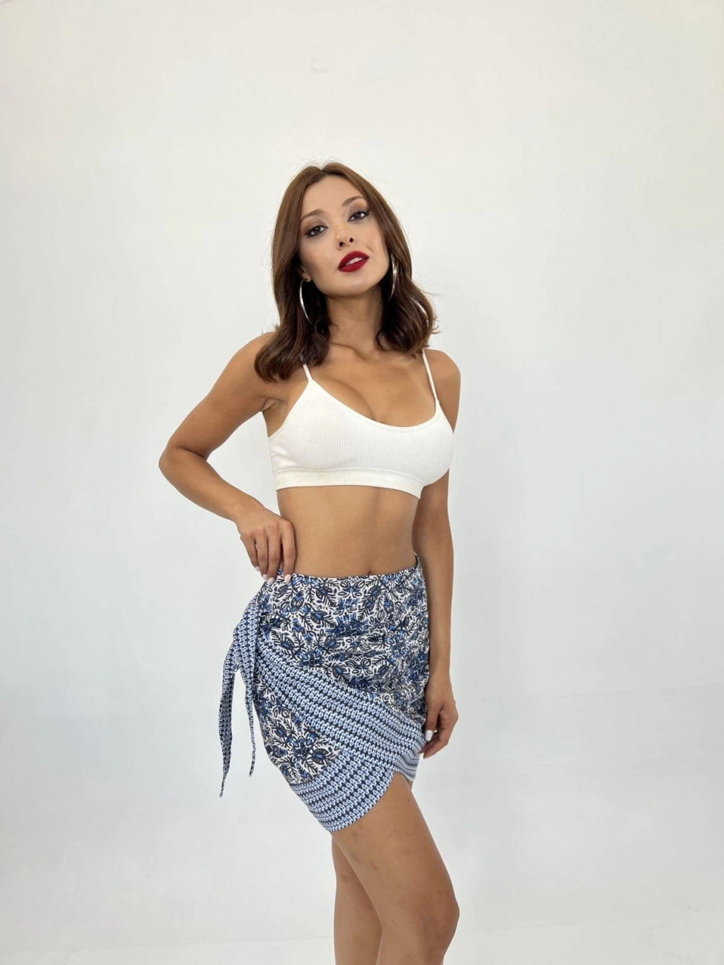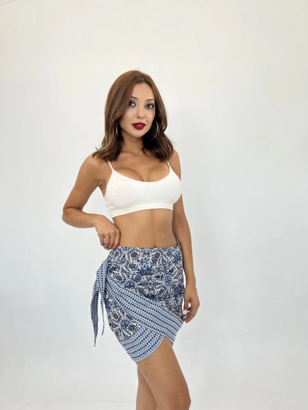 Modelin Ölçüleri: Boy:165, Kg:55, Göğüs:90, Bel:72, Kalça: 100