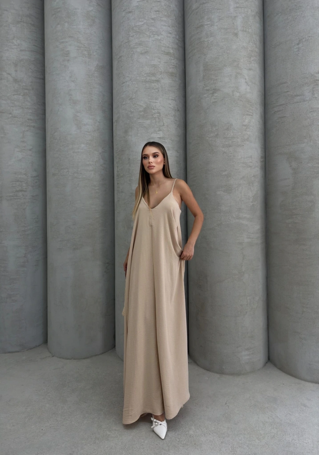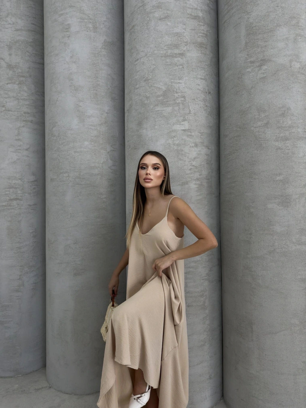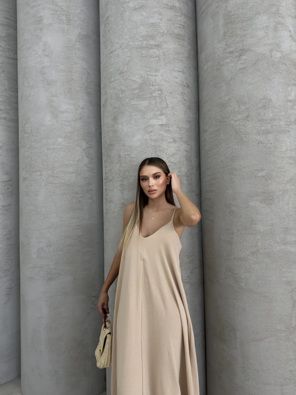 Fermuar detaylı fitilli şardonlu elbise bej a3178