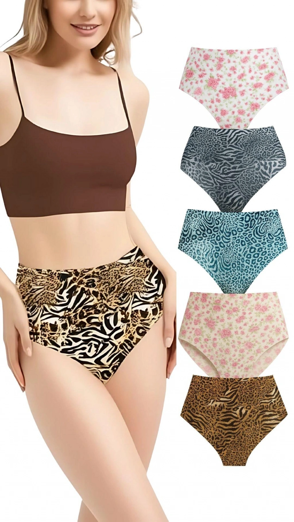 ANI Desenli Lazer Kesim Külot 5'li Paket – İz Yapmaz, Yüksek Bel, Günlük Rahat ADZ001