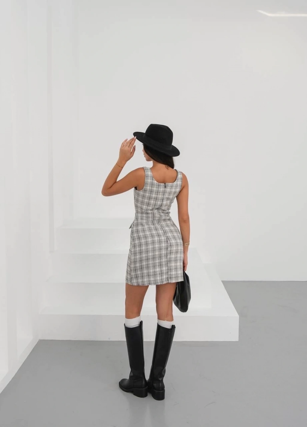 Askılı ch kumaş düğmeli elbise siyahbeyaz h265007