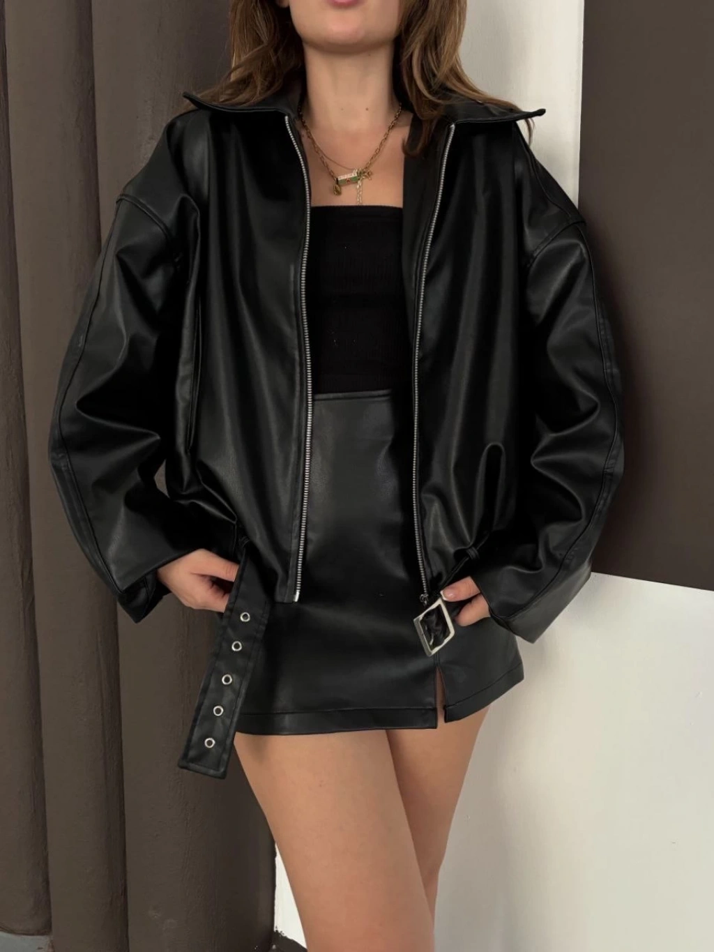 Astarlı kemerli pb deri ceket zümrüt yeşili onst
