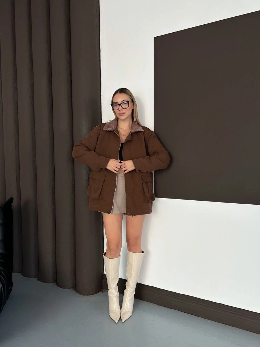 Astarlı yaka detaylı artos ceket kahve st2651019
