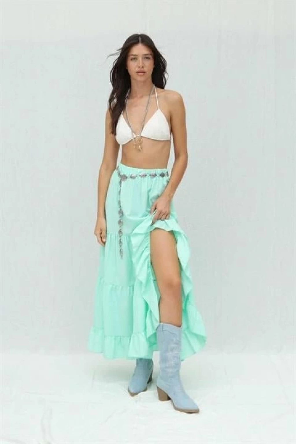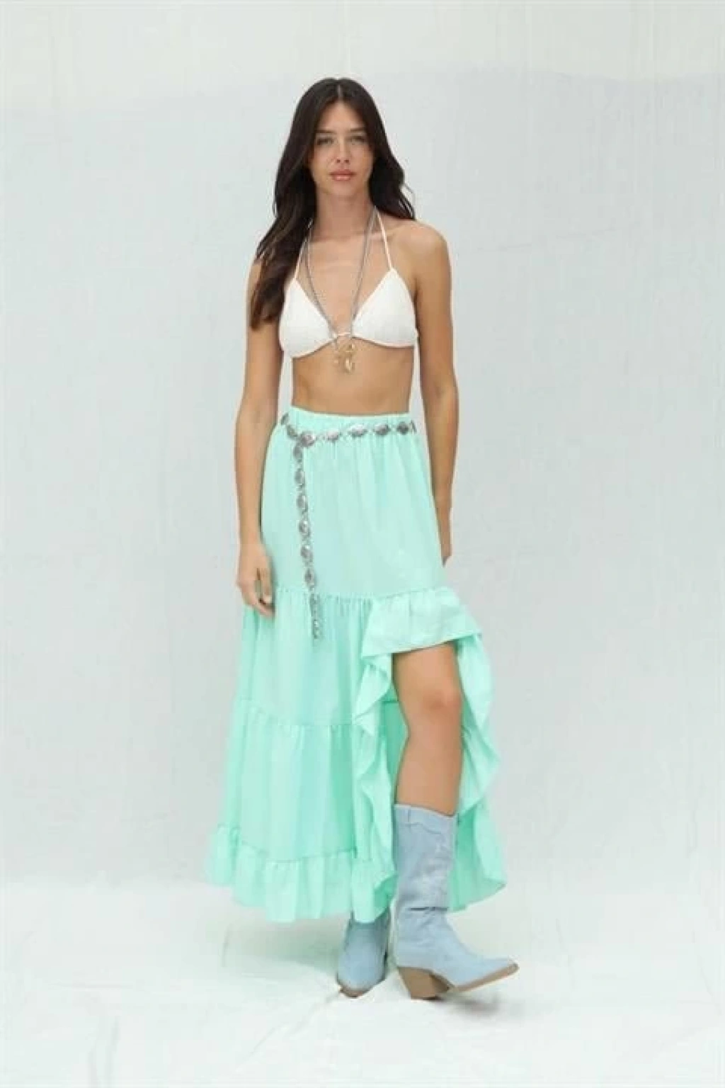 Modelin Ölçüleri: Boy:165, Kg:55, Göğüs:90, Bel:72, Kalça: 100