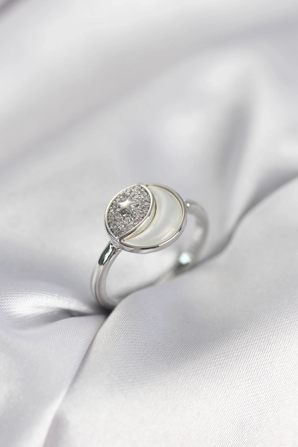 Ay Yıldız Model Gümüş Renk Zirkon Taşlı Kadın Yüzük