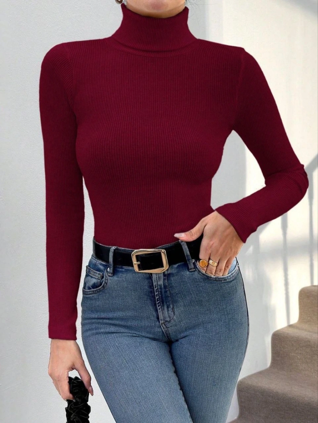 Balıkçı yaka dar kesim kaşkorse kazak bordo w3103