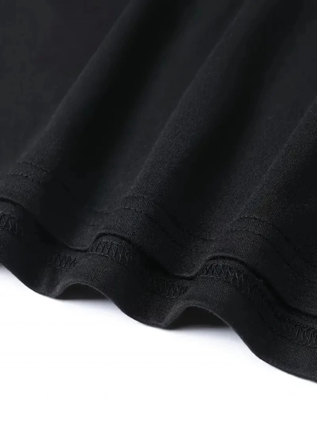 Erkek Bisiklet Yaka Baskılı Kısa Kollu Tişört Streetwear Günlük Basic Pamuklu T-shirt - Siyah