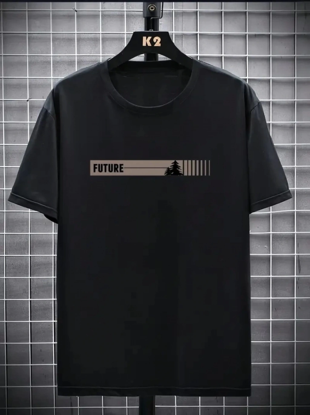 Wafıl Kumaş Tişört Regular Kalıp Bisiklet Yaka Baskılı Günlük Basic T-Shirt - Siyah