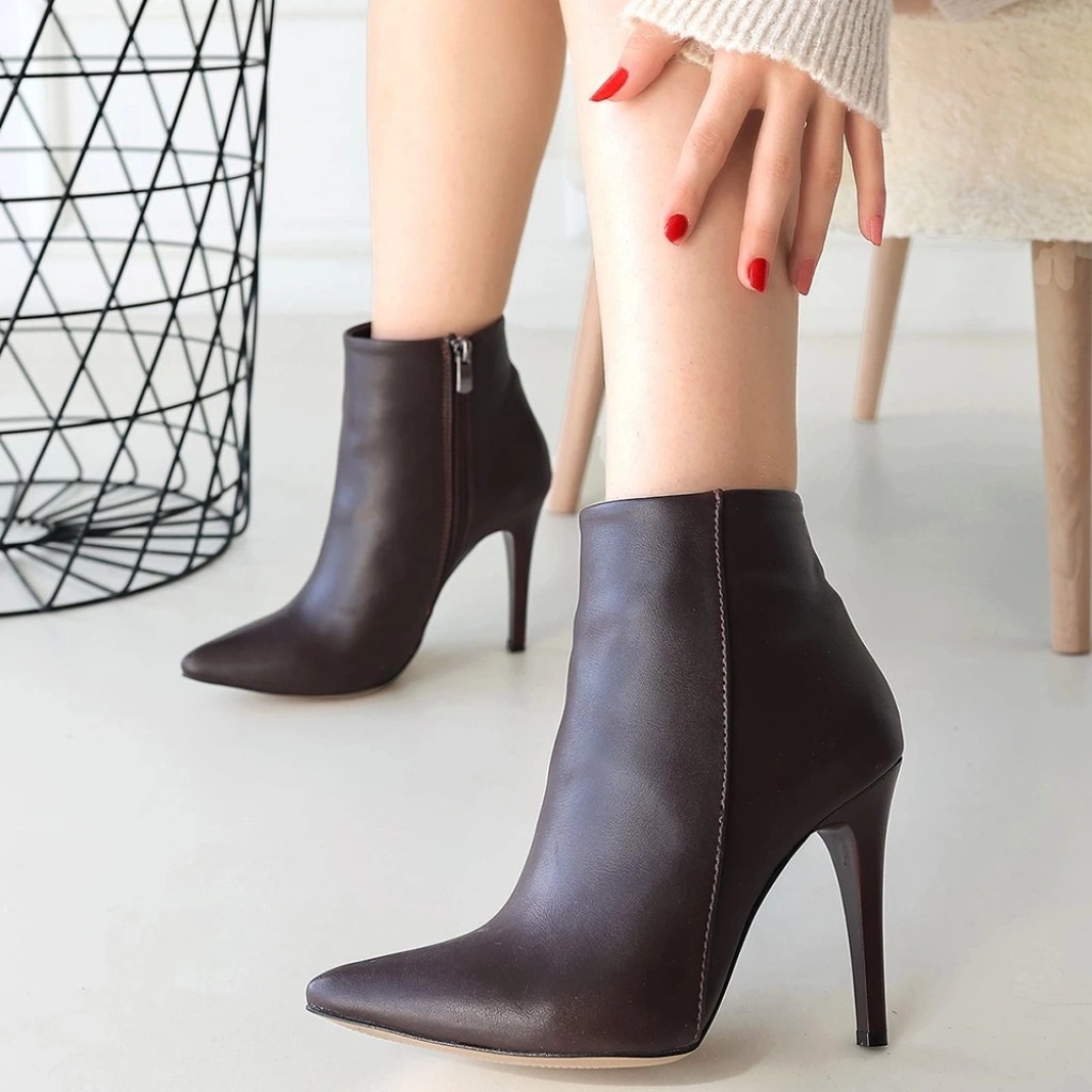 Orjen Kahverengi Cilt Streç Topuklu Bot
