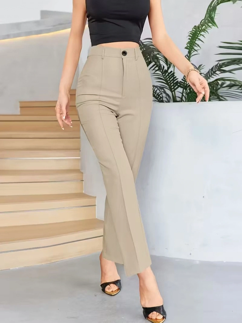 Bordo Renk Yüksek Bel Maskülen Kesim Kumaş Pantolon