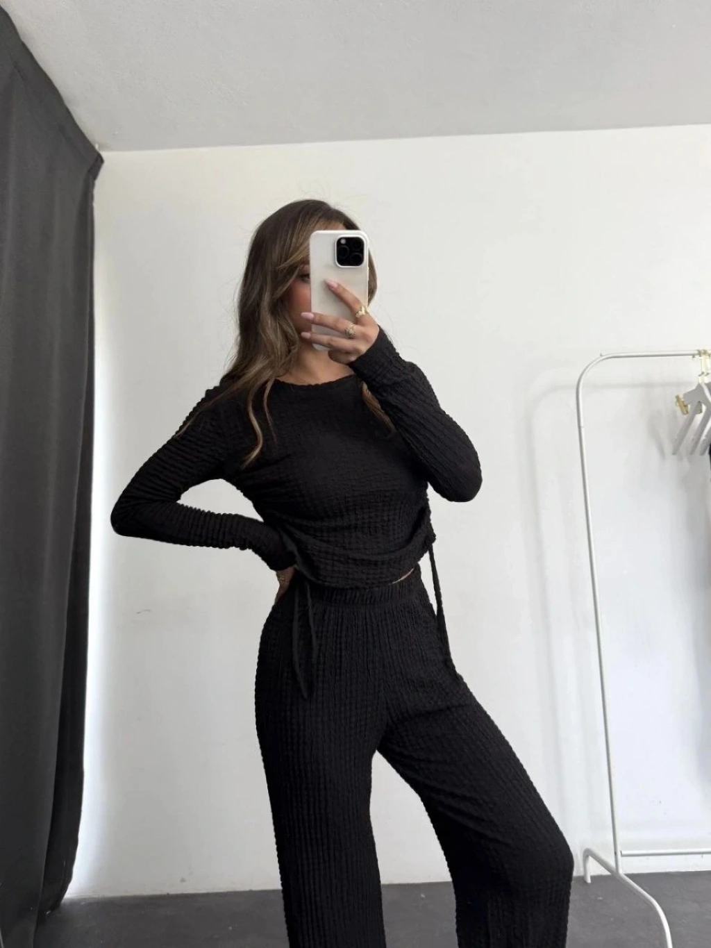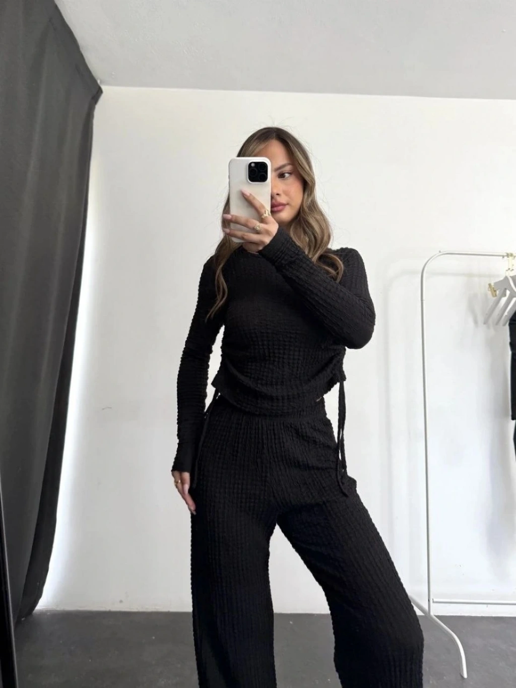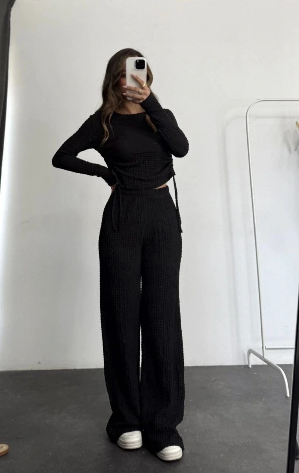 3 iplik içi Şardonlu yarım fermuarlı alt üst takım siyah