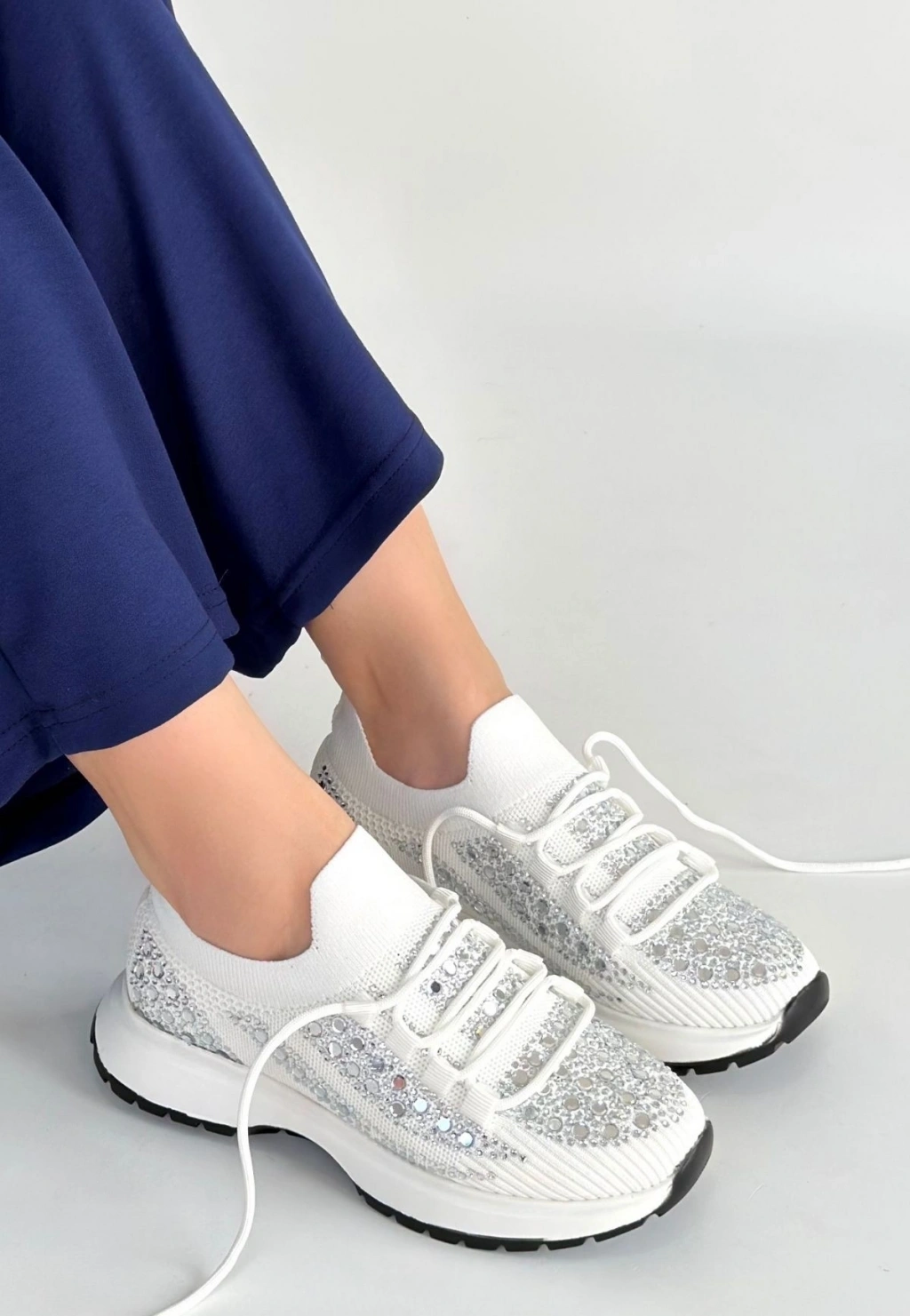 Feort Beyaz Triko Bağcıklı Spor Ayakkabı