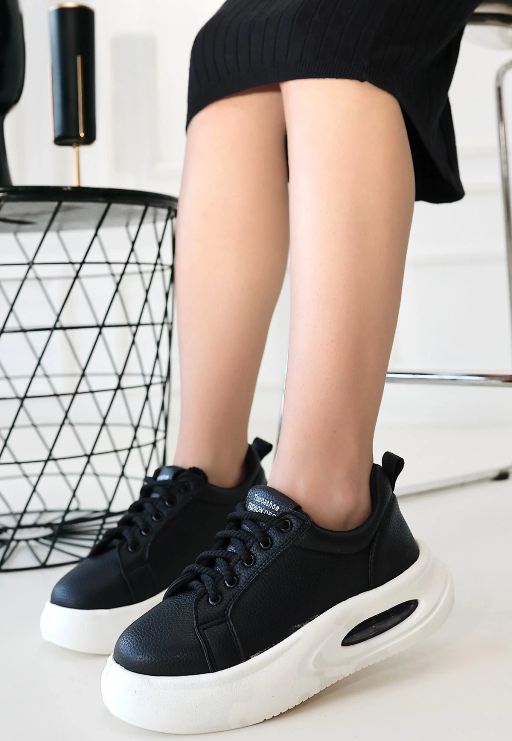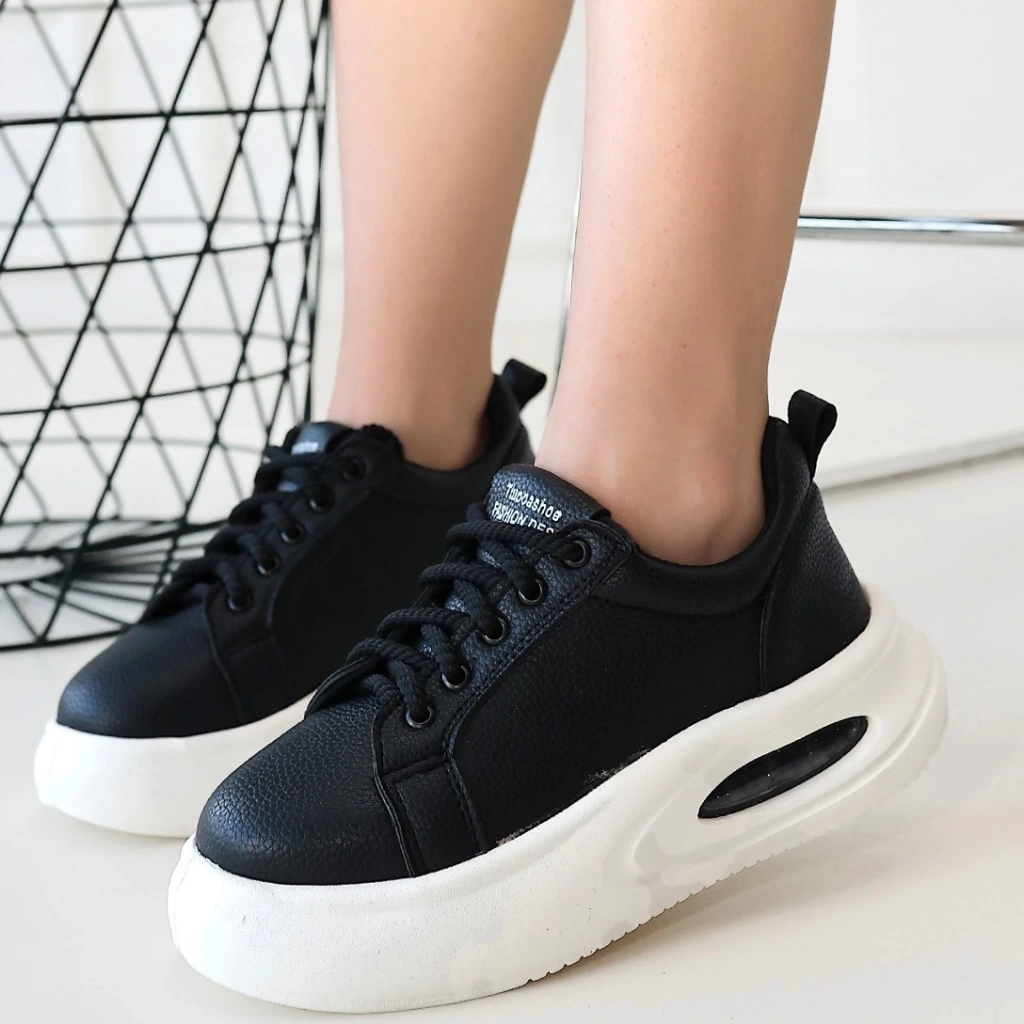 Mopin Siyah Deri Bağcıklı Spor Ayakkabı