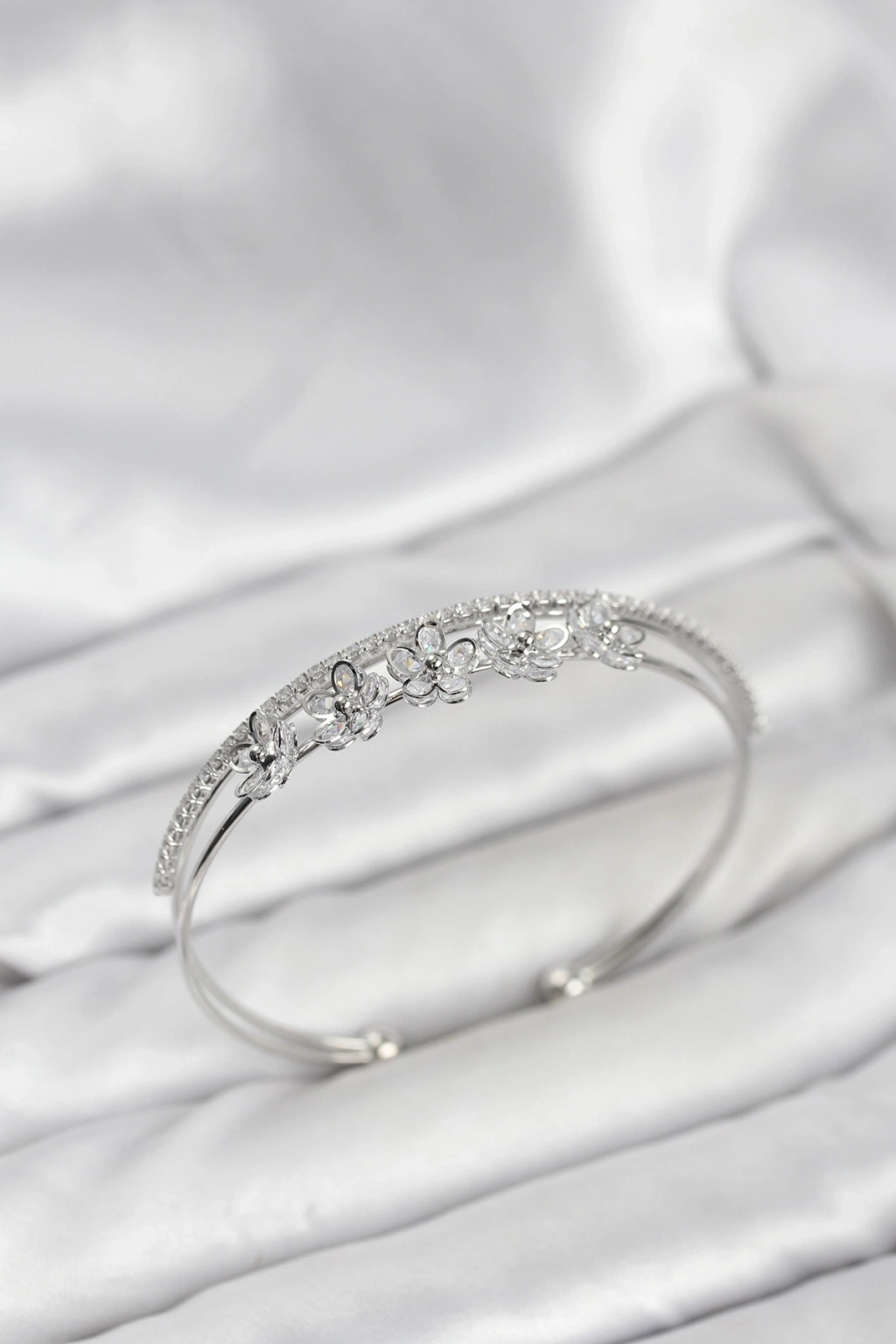 Çiçek Model Pirinç Gümüş Renk Kadın Bileklik
