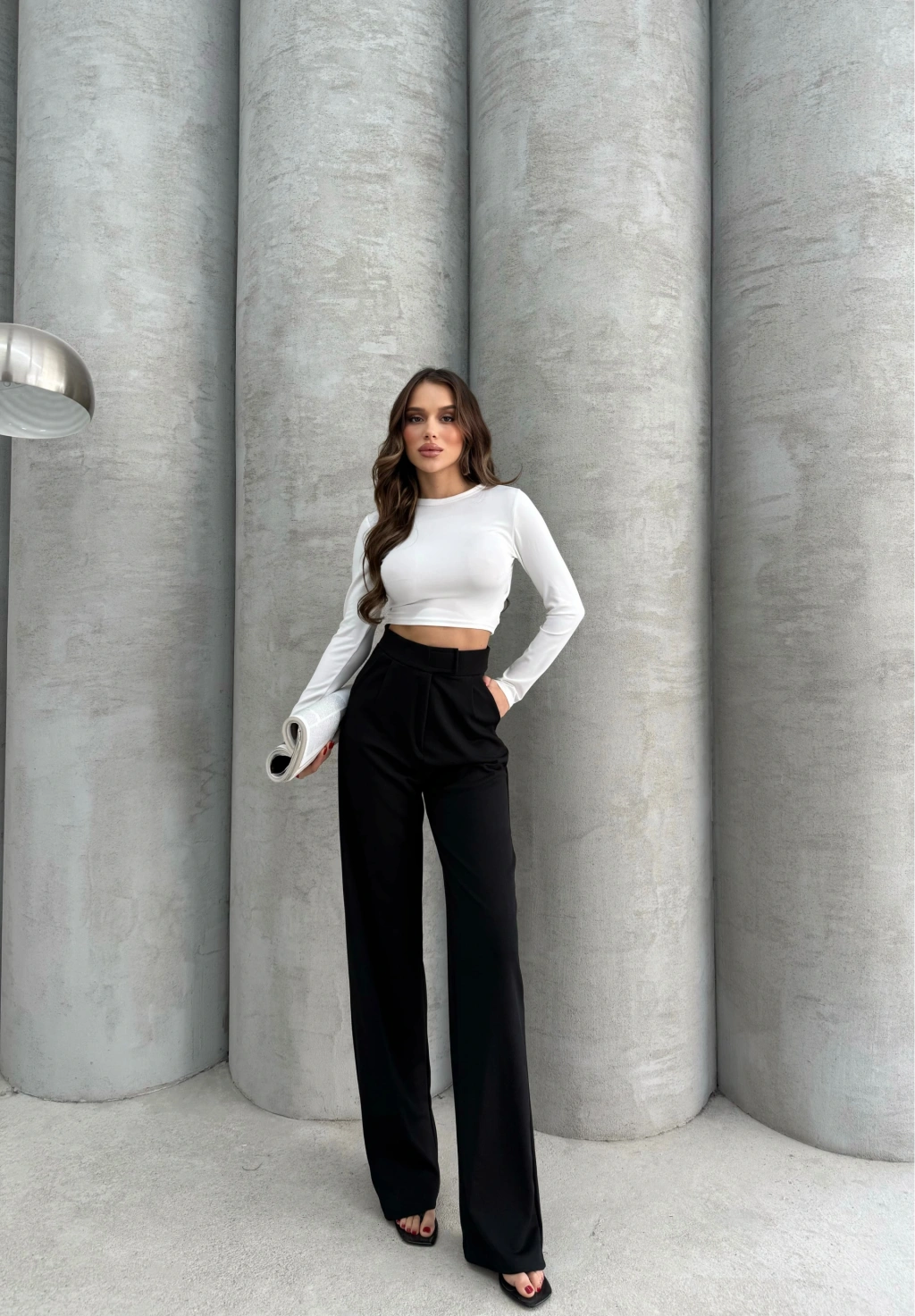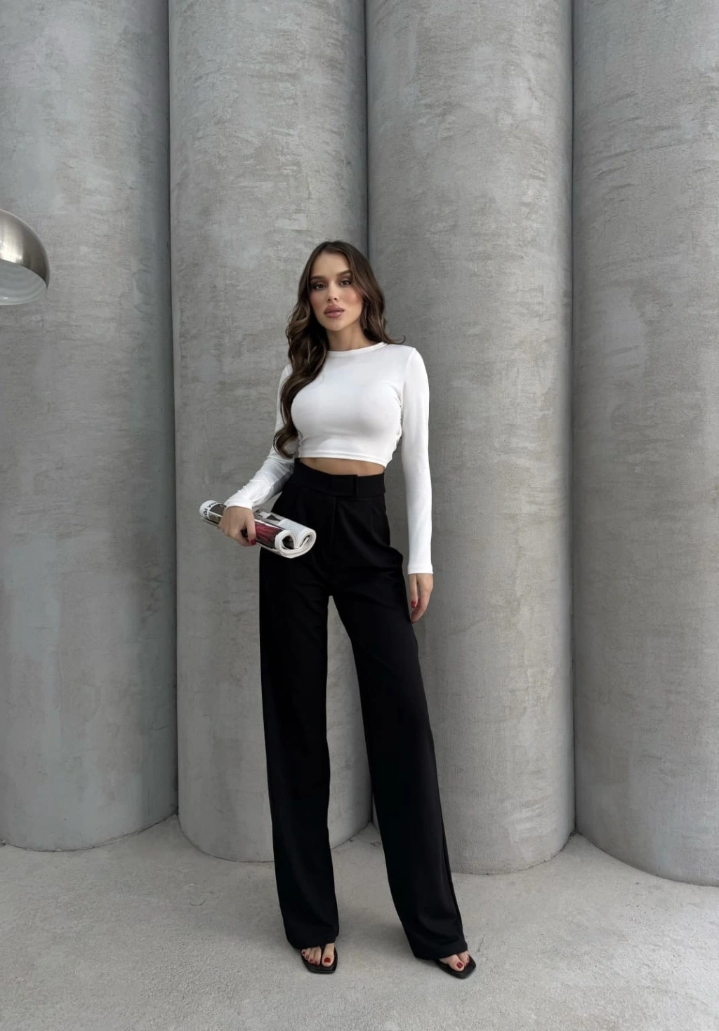 İspanyol yırtmaçlı paça deri pantolon siyah hn