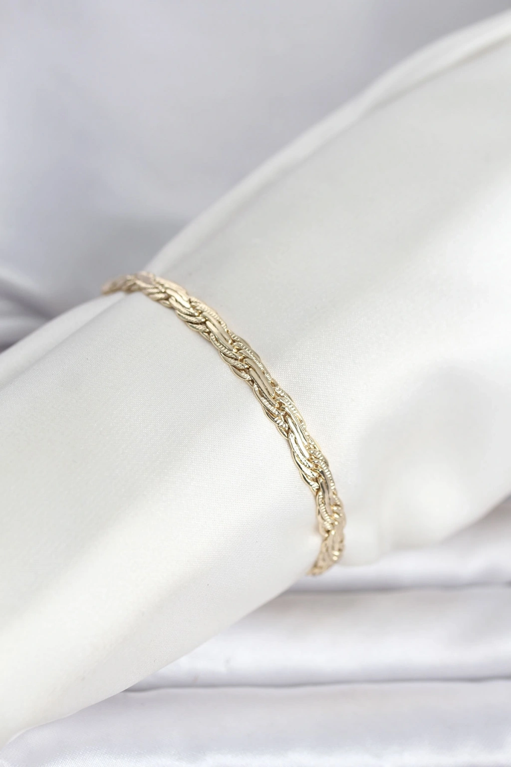 CM 14K Gold Renk Ezme Sarmal Zincir Model Kadın Bileklik