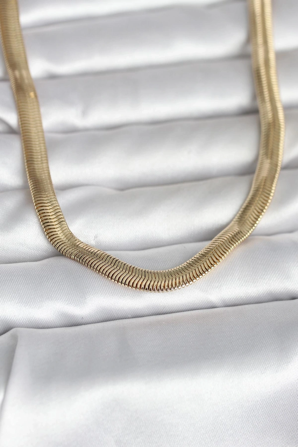 CM 14K Gold Renk Kalın Yassı Yılan Zincir Model 45 cm Kadın Kolye